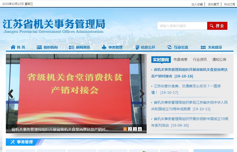 江苏省机关事务管理局主要职责:(一)指导全省机关事务管理工作,拟订机关事务管理的政策、规划和规章制度并组织实施。负责省级机关事务的管理、保障、服务工作。(二)协助有关部门制定省级机关行政经费管理制度并组织实施。会同有关部门负责省级党政机关办公用房大中修经费管理,承担省级机关住房维修、省级党政机关公务用车购置等专项经费的管理。按规定指导省级机关会计事务工作。(三)按规定承担省级机关资产管理工作,制定具体制度和办法并组织实施。(四)拟订党政机关办公用房管理制度和办法并组织实施,会同有关部门指导监督下级党政机关办公用房管理工作。负责省级党政机关办公用房的项目初审、规划、建设、调配、大中修、处置和权属等管理。负责省级机关用地管理工作。会同有关部门指导党政机关办公用房附属的人防工程和设施的管理工作。(五)负责省级机关住房保障工作,拟订住房制度改革实施方案、住房保障和管理的规章制度并组织实施。负责省级机关有关住房的建设和管理。按规定负责省级机关住房资金和住房公积金的管理工作。(六)推进、指导、协调、监督全省公共机构节能工作。负责省级公共机构节能管理工作。(七)拟订党政机关公务用车管理制度和办法并组织实施,指导监督下级党政机关公务用车管理工作。按规定负责省级党政机关公务用车的编制、标准、配备和处置管理工作。(八)指导和协调省级机关绿化、爱国卫生、安全等工作。负责实施省级机关后勤工人的技术培训、等级考核工作。(九)拟订省部级干部有关服务保障的规章制度并组织实施,承担相关服务管理和保障工作。(十)会同有关部门制定省级机关国内公务接待的相关制度和标准。负责驻省会城市办事机构管理工作,指导省级机关部门和市、县政府及部门驻省会城市办事机构管理工作。(十一)会同有关部门组织拟订省级机关后勤体制改革政策、制度并监督实施,指导省级机关后勤服务工作。(十二)完成省委、省政府交办的其他任务。