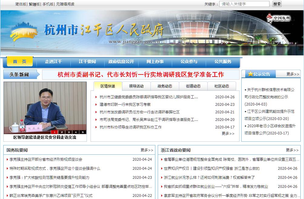东南形胜,三吴都会,钱塘自古繁华。江干区,东毗“八月十八潮,壮观天下无”的钱塘江,西依“水光潋滟,山色空蒙”的西子湖,中贯“流过1400多个春秋,踏过1794公里征程”的京杭大运河,面积210.22平方公里,共辖10个街道(其中2个街道委托杭州经济技术开发区管辖,面积105.78平方公里),辖区有闸弄口、凯旋、采荷、四季青、笕桥、彭埠、九堡、丁兰等八个街道,142个社区和4个行政村,户籍人口39.7万,登记外来人口42.5万。江干区位优势突出,地理得天独厚,既是杭州接轨大上海、融入“长三角”的“桥头堡”,也是杭州城市发展战略的轴心所在,还是杭州的交通枢纽中心。境内水、陆、空四通八达,杭州萧山国际机场隔江而峙;沪杭甬高速公路和沪杭、浙赣、杭甬、杭长铁路交会通衢;距中国最大的国际深水港口上海、宁波组合港150公里;钱江二桥、三桥、六桥横亘钱江两岸;杭州火车东站和汽车东站位于境内,华东地区最大的杭州新客运中心已于2008年9月投入使用;雄伟的三堡船闸,沟通了千年古运河与钱塘江的水运交通;仅次于上海铁路南站的“长三角”第二大交通枢纽中心,集客运专线、城际铁路、磁悬浮交通、干线铁路、城市地铁、公路客运、城市公交、运河码头等多种交通形式和配套服务设施于一体的杭州铁路东站综合交通枢纽中心项目也已启动。江干区历史悠久,人文荟萃,既是一个老城区,也是一个建设中的新城区,还是一个未来的城市新中心。隋唐杭州州治、五代吴越国皇城、南宋皇宫及六部官邸均在江干境内;古时曾是有名的商品集散地和通商贸易口岸,有着“钱塘江畔金江干”之美誉;早年又是杭州副食品基地,被称为“菜园子”,为杭州“天堂”的美名奠定了厚实的物质基础。随着杭州“构筑大都市、建设新天堂”及“打造东方品质之城、建设幸福和谐杭州”战略的实施,江干成为杭州“城市东扩”、“决战东部”城市战略和实现新一轮发展的主战场、主阵地,迎来了史无前例的发展机遇。杭州新的政治、经济、文化中心,CBD所在地——“钱江新城”框架初成、雄姿初现,以大型现代化交通枢纽为圆心的“城东新城”、“丁桥新城”启动建设,江干正迅速成为杭州——城市新门户、都市新中心、浙商新高地、金融新蓝海!伴随“三大新城”加快建设、地铁一号线通车运行、东站枢纽部分启用、市行政中心入驻,江干将进入中心区发展的新纪元。近年来,江干区以“四新五化”为目标,全面加强经济、社会、治理、文化、生态现代化建设,全力推进城市化进程,在应对挑战中推进转型升级,在复杂环境中推动科学发展,经济一直保持每年两位数的增长,社会各项事业繁荣昌盛,精神文明建设生机勃勃。政通人和,物阜民丰,人民安居乐业,先后获得省级教育强区、科技强区、体育强区、示范文明城区、和谐社区建设示范区、卫生先进区、社区建设先进区、省卫生应急工作示范区、省流动人口计生基本公共服务均等化示范区,平安创建“三连冠”和全国社区建设示范城区、全国科技工作先进区、全国义务教育基本均衡发展区、全国慢性病综合防控示范区、全国人口计生阳光统计示范单位等称号。美国奥的斯、日本IUK、英国百安居、德国麦德龙等十多家全球500强企业纷纷落户,江干正成为国内外投资者创业的天堂。从“西湖时代”到“钱塘江时代”,江干的建设方兴未艾,江干的变化日新月异,江干的发展欣欣向荣,江干的前景灿烂辉煌。这里,是杭州中央商务区;这里,是杭州交通枢纽区;这里,是杭州大型居住区。这里是美丽江干,这里是幸福江干,这里是和谐江干,这里是平安江干!