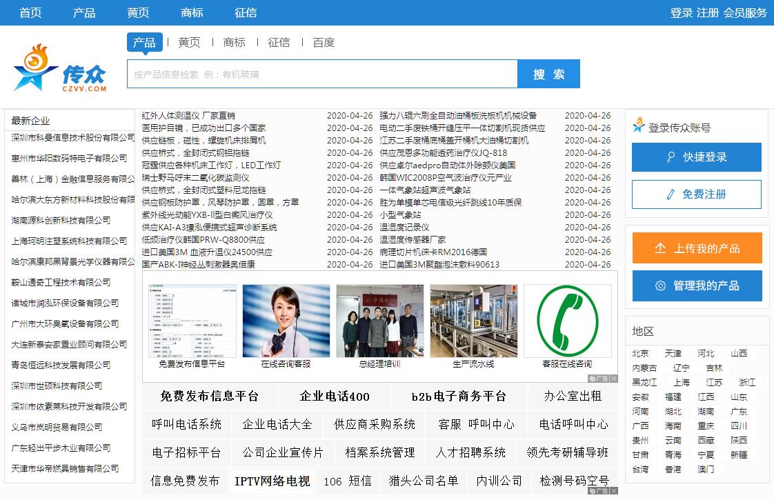 传众搜索隶属于:南京传众网络科技有限公司(英文名:NANJING CHUANZHONG Digital NET Holding Group Co.,Ltd)上线于2011年底,截至目前,传众搜索已经成长成为服务于供求服务商的大型商贸类企业垂直搜索平台!南京传众网络科技有限公司(NANJING CHUANZHONG Digital NET Holding Group Co.,Ltd)注册于2005年9月,注册资金100万人民币。由一批具备丰富的网络、Internet、电信增值工作经验及软、硬件开发和维护经验的专业人员组成。主要从事计算机系统集成研发、软件开发、电信增值服务提供等业务。2010年南京传众网络科技有限公司进行业务转型,将互联网的发展定为公司的主体发展方向,致力于发展江苏具备当地特色和潜力的互联网+服务型企业。 随着Intemet的迅速发展,如何在浩瀚的网络信息资源中查询企业想要 的信息变得越来越重要。为此,传众人根据有针对性的市场研究,以扎实的开发团队,丰富的行业经验,良好的用户服务经验为基础,于2010立项研发,2011年内测上线,解决企业需求的垂直搜索产品--“传众搜索”! 我们始终保持为中小企业服务的初衷从上线至今对中小企业基础服务免费,协助企业打开互联网+的第一步!公司始终尊崇“踏实、拼搏、责任的企业精神,并以诚信、共赢、开创经营理念,创造良好的企业环境,以全新的管理模式,完善的技术,周到的服务,卓越的品质为生存根本,不断在各个领域提升自己,传众搜索的上线更得到了腾讯网,搜狐网,网易等多家媒体争相报导,得到客户一个又一个好评!也让传众人更加有信心为早日实现垂直的商业的生态而努力!传众搜索(www.czvv.com),创建于2011年,传众搜索主要为中小企业提供智能釆购搜索、CRM、自助建站服务,创立的初衷就是为中小企业节约营销成本,提高企业营销效率,2012年6月,日流量已经突破20万,2014年12月日流量突破百万,传众搜索按照国际行业分类标准开发的数据库系统超过亿级规模,其中企业数据规模已达千万家,用户每天搜索请求2000万次,传众搜索现已成为中小企业推广企业重要渠道之一,并有潜力做到行业搜索领先位置。传众专注服务于中小企业领域,协助中小企业通过互联网络开展产品营销、产品推广! 未来,传众搜索将帮助更多中小企业进入互联网,通过先进的搜索,集采匹配技术及大数据技术,为中小企业创造一个诚信,卓越,智能,交易,管理,移动应用一站式互联网管家服务平台。