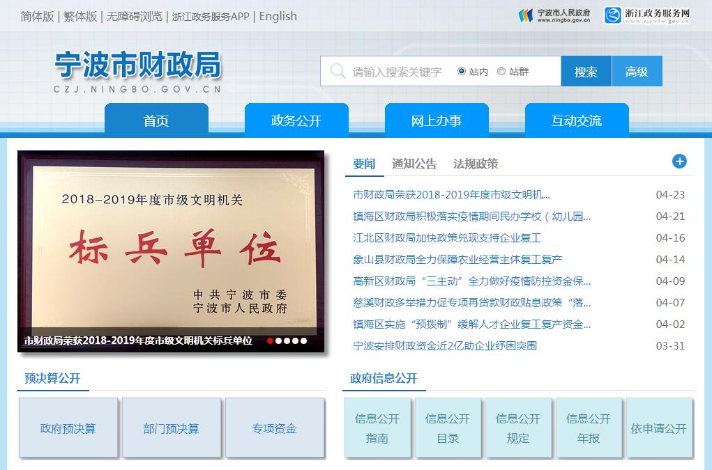 宁波市财政局是主管财政工作的市政府组成部门。宁波市财政局的主要职责是: (一)贯彻执行国家、省、市有关财政、税收、财务、会计、行政事业单位国有资产管理等法律、法规、规章和政策;起草财政、财务、会计管理等地方性法规、规章草案和规范性文件,经批准后组织实施并监督检查。(二)分析预测宏观经济形势和财政运行态势,参与制定有关宏观经济政策,提出运用财税政策实施宏观调控和综合平衡社会财力的建议;研究财政改革和发展规划,编制中长期财政规划;拟订和执行财政分配政策,完善鼓励公益事业发展的公共财政政策。(三)负责市级各项财政收支管理。编制年度市本级财政预算草案,经批准后组织执行;编制市本级和汇编全市年度财政决算;受市政府委托,向市人大报告全市财政预算及其执行情况,向市人大常委会报告决算;监管各县(市)以及特定区域的预算执行情况;负责审核批复部门(单位)的年度预决算;完善转移支付制度;办理县(市)区转移支付,以及市级预算追加、调减;组织制定经费开支标准、定额;指导全市乡镇财政工作。(四)负责政府非税收入管理。拟订政府非税收入管理制度和政策;管理政府性基金和行政事业性收费;管理财政票据;监督管理彩票市场和彩票资金。(五)组织制定国库管理制度和国库集中支付制度,指导和监督市级国库现金管理工作;负责制定政府采购制度,监督管理政府采购工作。(六)负责制定全市行政事业单位国有资产管理规章制度,承担行政事业单位国有资产管理工作。(七)负责审核和编制国有资本经营预决算草案;制定国有资本经营预算的制度和办法;收取市本级企业国有资本收益;制定并组织实施企业财务制度;按规定管理金融类企业国有资产;参与拟订企业国有资产管理相关制度。(八)参与拟订市级建设投资的有关政策,制定基本建设财务管理制度;负责政府投资项目竣工财务决算的审核批复;负责对政府投资项目的财政性资金监督管理和跟踪问效;负责有关政策补贴和专项储备资金管理。(九)负责审核和编制社会保障预决算草案;制定并组织实施社会保障资金(基金)财务制度和管理办法,参与拟订社会保障政策;负责社会保障资金的征收和划拨,管理市级各项社会保障支出。(十)提出优化财政支出结构的政策建议,组织开展财政资金绩效评估和分析;监督全市财政法规、政策的执行情况,反映财政收支管理中的重大问题,提出加强财政管理的政策建议,组织实施全市财政监督检查工作。(十一)贯彻执行地方政府性债务管理制度和政策,做好相关统计工作;承担外国政府和国际金融组织贷款管理工作;负责财政预算内行政事业单位和社会团体的非贸易外汇管理。(十二)管理和指导全市的会计、资产评估和社会审计等工作;依法对注册会计师、注册资产评估师和注册会计师事务所、资产评估事务所等中介机构及注册会计师协会、资产评估协会等行业自律管理组织进行监督、指导。(十三)负责制定市级农业综合开发政策;负责全市农业综合开发管理工作;承担市农村综合改革工作领导小组办公室日常工作。(十四)制定和实施全市财税科学研究和教育规划;负责全市财税信息和财税宣传工作;组织指导全市财税系统思想政治工作和精神文明建设。(十五)承办市政府交办的其他事项。