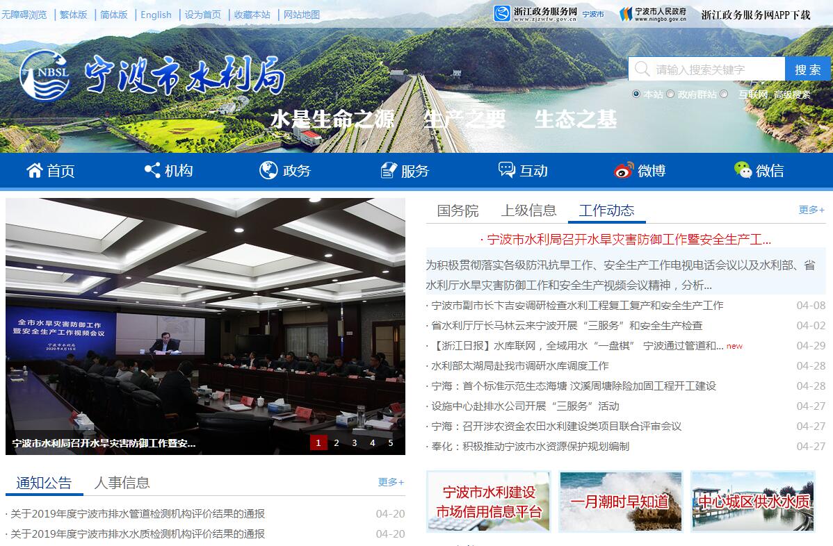 宁波市水利局主要职责:(一)贯彻执行国家、省有关水利的法律、法规、规章和方针、政策,受委托起草有关水行政管理的地方性法规、规章草案。(二)负责保障水资源的合理开发利用。拟订水利发展规划、水资源开发利用规划,组织编制并监督实施全市重要江河湖泊的流域(区域)综合规划、防洪规划和有关专业规划;按规定制定水利工程建设与管理的有关制度并组织实施;负责提出水利固定资产投资规模和方向、市级财政性资金安排的意见;提出市级水利建设投资建议并组织实施。(三)负责统一管理水资源。组织开展水资源调查评价工作,拟订全市和跨地区水中长期供求规划、水量分配方案并监督实施,负责重要流域、区域以及重大调水工程的水资源调度,负责城市建成区供水水源的规划、建设和管理;组织实施取水许可、水资源有偿使用制度,组织有关国民经济总体规划和有关专项规划及重大建设项目的水资源论证和防洪论证工作;组织编制并发布全市水资源公报;指导水利行业供水和农村供水工作。(四)负责水资源保护工作。组织编制水资源保护规划,拟订水功能区划并监督实施,负责饮用水水源保护工作和地下水开发利用、城市规划区地下水资源管理保护工作;核定水域纳污能力,提出限制排污总量意见,指导入河排污口设置工作;指导全市水生态建设。(五)负责水利设施、水域及其岸线的管理与保护。负责全市水利基建项目建议书、可行性研究报告、初步设计和施工图的审查、审批;负责重要江河、水库、湖泊及河口的治理和开发,组织实施具有控制性或跨地区的重要水利工程的建设与运行管理,组织实施有关涉河涉堤建设项目审批(含占用水域审批)并监督实施,负责水利工程建设项目和水利建设市场的监督管理;管理全市河道及采砂;依法负责水利行业安全生产;负责滩涂资源的管理、保护和开发。(六)负责水旱灾害防治工作。组织、协调、监督、指导全市防汛抗旱工作,组织编制市防汛抗旱应急预案并组织实施,对重要江河湖泊和重要水工程实施防汛抗旱调度和应急水量调度;负责水利突发公共事件的应急管理工作;承担市人民政府防汛防旱指挥部的日常工作。(七)负责水土保持工作。拟订水土保持规划并监督实施,组织实施水土流失的综合防治、监测预报并定期公告,负责有关建设项目水土保持方案的审批、监督实施及水土保持设施的验收工作,负责市重点水土保持建设项目的实施。(八)负责节约用水工作。拟订节约用水政策和有关标准,组织编制节约用水规划,发布节约用水情况通报,组织、监督全市节约用水工作,指导和推动节水型社会建设工作。(九)组织、指导水政监察和水行政执法。负责重大涉水违法事件的查处,协调、指导水事纠纷的处理。(十)指导农村水利工作。组织协调农田水利基本建设,组织、指导农村饮水安全、节水灌溉等工程建设和管理工作,指导农村水利社会化服务体系建设;在职责范围内负责水能资源开发、利用、管理。(十一)指导水文工作。负责水文水资源监测、水文站网建设和管理,对江河湖库和地下水的水量、水质实施监测,发布水文水资源信息、情报预报。(十二)开展水利科技、教育和队伍建设。组织水利科学研究、技术推广及国际合作交流,拟订水利行业的技术标准、规程规范、定额并监督实施;组织开展水利行业质量监督工作,指导全市水利队伍和农村基层水利服务体系建设;组织、指导水利信息化工作。(十三)监督市级水利资金和直属单位国有资产的运行管理。(十四)承办市政府交办的其他事项。