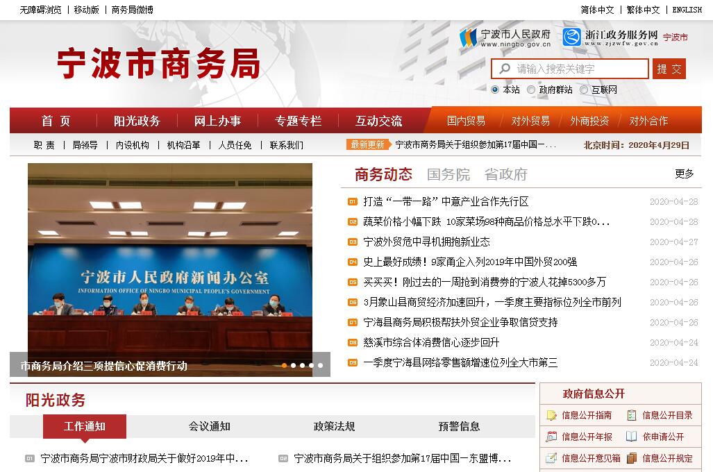 宁波市商务局主要职责:(一)负责国内外贸易、外商投资、国内引资、对外经济合作等商务职责。在法定权限内起草有关商务地方性法规、规章草案,拟订全市有关商务发展战略、规划和政策并组织实施。指导全市商务人才队伍建设。组织实施对外开放战略,开拓国内外市场,推动内外贸融合。(二)负责进出口公平贸易和贸易救济调查工作。组织协调反倾销、反补贴、保护措施及其他与进出口公平贸易相关工作。建立完善对外贸易和产业损害预警机制。(三)统筹国内贸易流通工作。推进流通产业结构调整和流通标准化建设。推进现代流通方式发展和供应链创新应用。负责制定商品交易市场发展规划。负责城市商业网点规划,推进城乡市场体系建设。负责再生资源回收管理。(四)负责商务领域消费促进工作,培育消费促进平台。负责培育老字号等商贸品牌。指导商贸服务业行业管理。拟订全市加油站和成品油仓储行业发展规划,负责成品油经营活动的监督管理。配合有关部门指导做好商贸服务业(含餐饮、住宿、电商)的安全生产管理工作。(五)负责制定规范市场运行、流通秩序的政策并组织实施。监测分析市场运行、商品供求状况和商品价格,并进行预测预警和信息引导。按有关规定对特殊流通行业进行监督管理。负责商务领域信用建设。推动重要产品追溯体系建设。负责单用途商业预付卡行业管理。负责“菜篮子”工作。(六)负责电子商务综合协调和行业管理工作。制定电子商务发展政策,引导和支持电子商务平台、服务体系、产业基地等建设。开展电子商务行业统计监测和服务支撑体系建设等工作。(七)负责对外贸易管理工作。制定对外贸易发展规划和政策措施。促进对外贸易发展方式转变、结构优化升级。承担进出口商品管理和机电产品、易制毒化学品、两用物项进出口管理监督工作。负责对外贸易统计监测和运行分析。(八)负责对外贸易促进体系建设。制定国际市场开拓发展计划和政策措施。牵头组织重点国际贸易展会活动。促进企业开拓国际市场。(九)负责跨境电子商务工作。负责中国(宁波)跨境电子商务综合试验区建设。承担与相关部门的政策创新研究。承担跨境电子商务的统计、监测和运行分析。(十)负责服务贸易促进工作。制定全市服务贸易、服务外包发展规划和政策措施。负责服务外包示范城市综合工作。负责服务贸易、服务外包的统计监测和运行分析。推进国际货运代理业发展。(十一)负责外商投资促进和管理工作。制定利用外商投资发展政策,指导全市外商投资促进工作。开展外商投资企业服务,优化外商投资环境。负责外商投资年度目标制定、统计监测和综合评价。(十二)负责重点开发区域管理工作。综合协调、指导和管理国家级经济技术开发区、海关特殊监管区、省级经济开发区以及纳入市重点开发区域管理的各类开发区相关业务工作。负责开发区运行的统计监测和综合评价工作。(十三)负责对外经济合作工作。制定全市对外经济合作发展规划和政策措施。负责境外投资、对外劳务合作和对外援助等监督管理。负责对外承包工程及其安全生产的监督管理。负责全市对外经济合作的统计监测和运行分析。(十四)负责国内投资促进工作。制定国内投资促进发展规划和政策措施。指导全市国内投资促进工作。负责组织重大国内招商活动和推进重大内资项目。负责全市国内招商引资统计监测和综合评价。(十五)负责与中东欧国家的经贸促进工作。制定与中东欧国家经贸合作规划和政策措施。负责协调推进与中东欧国家经贸合作和16+1经贸合作示范区建设。负责中国-中东欧国家博览会组织实施工作。(十六)完成市委、市政府交办的其他任务。