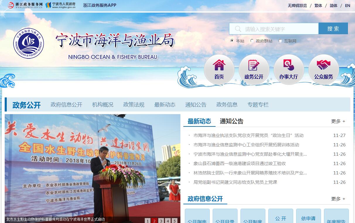 宁波市海洋与渔业局主要职责:(一)贯彻执行国家、省、市有关海洋与渔业的法律、法规和政策,以及有关国际公约、条约;起草有关海洋与渔业行政管理的地方性法规、规章草案和规范性文件,经批准后组织实施并监督检查;指导全市海洋与渔业行政管理。(一)贯彻执行国家、省、市有关海洋与渔业的法律、法规和政策,以及有关国际公约、条约;起草有关海洋与渔业行政管理的地方性法规、规章草案和规范性文件,经批准后组织实施并监督检查;指导全市海洋与渔业行政管理。(二)综合协调海洋开发利用,建立完善海洋管理制度。组织编制并监督实施海洋与渔业总体发展规划、海洋功能区划、海域使用规划、海洋与渔业水域环境保护与整治规划、海域海岛海岸带整治修复与保护规划;会同有关部门组织开展海洋经济运行监测、统计评估及信息发布;协调各涉海部门和行业海洋开发利用活动;规范海域海岛使用秩序,配合有关部门规范海岸带使用秩序;组织实施海域行政区域界线的勘定和管理。(三)负责海域使用管理和海底电缆管道管理。组织编制围填海规划、计划,并监督实施;组织实施海域海岛使用权属制度、有偿使用制度和使用权收购储备;负责海域海岛使用论证管理、使用权属登记和使用权市场建设管理;组织开展海域海岛海岸线资源调查评价评估及其使用动态监视监测工作;组织开展市辖海域海底电缆管道铺设勘察管理。(四)负责海岛保护管理和海域海岛地名管理。组织编制并监督实施无居民海岛保护与利用规划;组织开展海岛生态保护、无居民海岛利用管理;负责海域海岛地名(乡级以上人民政府驻地海岛除外)普查、标志设置和管理;组织开展海岛资源调查和使用动态监视监测工作;参与审核并监管涉海涉岛重大工程项目。(五)负责海洋环境、水生生物资源和渔业水域生态环境的保护工作。组织、管理海洋与渔业环境的调查、监测、监视和评价,协助市有关部门拟订污染物排海标准和总量控制制度,监督陆源污染物排海;负责防治海洋工程项目和海洋倾废对海洋污染损害工作;负责审核海岸工程环境影响报告书;负责渔业资源、水生生物湿地、水生野生动植物和水产种质资源的保护;组织海洋与渔业水域生态保护与修复和渔业资源的增殖工作;管理国家分工的海洋自然资源。(六)负责渔业行业管理。组织实施渔业生产经营许可制度;指导全市水产捕捞、养殖、加工、流通、远洋渔业和新兴渔业发展及渔业机械化工作;指导渔业经济体制改革、渔业产业结构调整、产品品质改善和渔业产业化;负责编制渔港、水产原(良)种场、现代渔业示范基地的规划,并组织实施;组织拟订水产养殖业发展规划;组织实施水产养殖病害防治和水生动植物防疫检疫工作。(七)负责海洋与渔业防灾减灾工作。负责海洋环境观测预报和海洋灾害预警预报;组织制定海洋灾害风险区划、海洋灾害防御规划,组织海洋监测观测网络建设;组织编制并实施防灾减灾应急预案,发布海洋灾害预警预报信息;指导开展海洋与渔业自然灾害影响评估;负责海洋与渔业防灾减灾体系建设,配合海上搜救工作;组织开展应对海洋领域气候变化工作。(八)负责海洋与渔业行政执法工作。实施管辖海域巡航执法制度;依法行使海洋监察、渔政渔港监督管理、渔业船舶监督检验;负责初级水产品质量安全、渔业生产安全、水产种苗及海洋与渔业资源的监督管理;负责海洋自然保护区、特别保护区、水生生物保护区的监督管理;组织和监督海洋与渔业污染事故的调查处理工作;负责“平安渔场”建设和较大渔事纠纷的调查处理;指导海洋与渔业执法队伍建设;指导渔业电信的管理工作。(九)负责海洋与渔业的科技管理工作。组织实施海洋与渔业基础与综合调查;拟订本市海洋资源管理与渔业的技术标准、规程、规范和办法及地方海洋环境质量标准,实施“科技兴海”、“科技兴渔”战略,组织制定海洋与渔业发展的重大技术进步措施,组织科技攻关和重大科研项目的研究;组织开展海洋与渔业领域节能减排;指导水产技术推广体系改革,组织实施水产技术推广工作;指导行业技术人才培养教育。(十)负责海洋与渔业外事、外经工作,组织开展对香港、澳门特别行政区及台湾地区有关海洋与渔业经济、技术的交流与合作。(十一)负责海洋与渔业经济的统计及相关核算工作;指导全市海洋与渔业信息网络建设和管理;监督管理减轻渔民负担工作。(十二)承办市政府交办的其他事项。