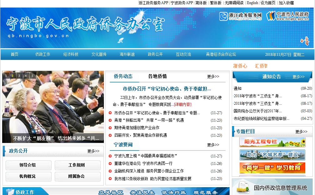 宁波市人民政府侨务办公室是主管全市侨务工作的市政府工作部门。其主要职责:(一)贯彻执行党和国家侨务工作方针、政策法规并监督检查贯彻执行情况;负责起草有关侨务行政管理的地方性法规、规章草案,经批准后组织实施;制订本市侨务工作的发展规划;调查研究侨情和侨务工作情况,向市委、市政府和省侨办提供侨务信息。(二)统筹协调有关部门和社会团体涉侨工作,配合有关部门研究处置涉侨突发事件,指导县(市)区侨务工作。(三)调查研究引进华侨华人、港澳同胞的资金、技术、人才工作并提出政策建议;协助有关部门通过侨务渠道开拓国际市场,负责对市侨商会进行业务指导。(四)开展归侨、侨眷工作,依法保护归侨、侨眷和港澳同胞在内地的合法权益;开展华侨华人、港澳同胞及其社团的团结友好工作;保护华侨的正当权益;协助有关部门做好华侨、归侨、侨眷和港澳同胞代表人士的人事安排工作;经市政府授权,负责处理本市与港澳民间交往事务;确认华侨、归侨、侨眷的身份。(五)牵头承办甬港经济合作论坛,指导各有关分论坛工作。(六)通过侨务渠道开展对台工作。(七)开展对华侨华人、港澳同胞的宣传、文化交流和华文教育工作。(八)指导并参与监督华侨华人、港澳同胞捐赠的使用和管理工作。(九)承办市人民政府交办的其他事项。