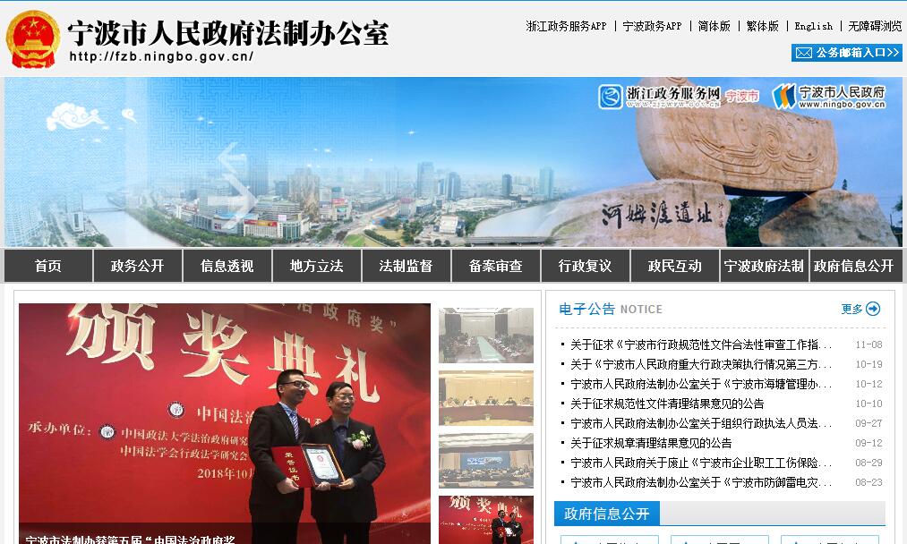 宁波市人民政府法制办公室主要职责:(一)调查研究依法行政和政府法制建设中出现的新情况、新问题,提出推进依法行政的具体措施和工作建议;协助市长办理法制工作事项,为市政府提供法律咨询服务;负责政府法律顾问事务工作。(二)负责统筹安排市政府立法工作,研究编制市政府年度立法工作计划草案,报经市政府批准后组织实施。(三)负责起草或组织起草重要的地方性法规草案、政府规章草案。(四)负责审查市政府各部门和县(市)区政府报送市政府审议的地方性法规草案、政府规章草案,协调地方性法规草案、政府规章草案审查过程中的有关问题。(五)负责办理国家、省人大常委会、省政府和市人大常委会立法草案征求市政府意见的工作。(六)承办市政府规章的立法解释工作;负责市政府规章立法后评估工作。(七)承办市政府、市政府办公厅规范性文件和市政府重大行政决策的合法性审查工作;承办各县(市)区政府、市政府各部门规范性文件及重大具体行政行为的备案审查工作;负责全市行政处罚、行政许可案件的统计工作;组织指导政府规章、规范性文件清理工作。(八)研究行政立法、行政诉讼、行政复议、行政赔偿、行政处罚、行政许可、行政收费、行政执行、行政调解、行政强制等涉及政府行为共同规范的法律、法规、规章实施以及行政执法中带有普遍性的问题,向市政府提出解决问题的意见,拟订有关配套制度和措施。(九)组织承办市政府行政复议案件和行政应诉案件;指导、监督全市行政复议和行政应诉工作;负责全市行政复议、行政应诉案件的统计工作。(十)组织承办市政府行政调解案件,指导协调全市行政调解工作。(十一)组织实施全市推进依法行政工作,协调依法行政工作中的有关问题,组织实施市政府对县(市)区政府和市政府各部门依法行政的考核工作;组织实施行政执法责任制,负责市政府行政执法监督工作,协调部门之间在行政执法中的矛盾和争议,指导县(市)区行政执法监督工作。(十二)负责市本级行政执法主体资格的审查、认定工作;负责协调和监督指导全市城市管理相对集中行政处罚权工作。(十三)负责全市行政执法人员、行政复议和行政应诉人员、政府法制干部的培训,以及行政执法有关证件的管理工作。(十四)组织开展政府法制理论、政府法制工作研究,编辑出版本市地方性法规、规章汇编,做好法律、法规、规章的宣传工作;联系指导宁波仲裁机构工作。(十五)承办市政府交办的其他事项。