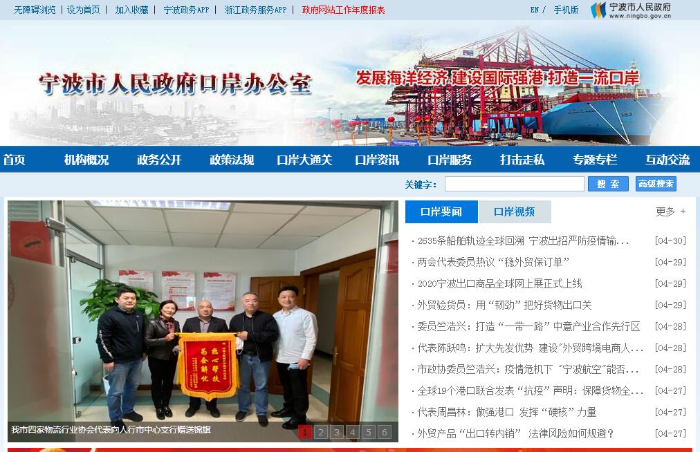 | 网站简介: 宁波市人民政府口岸办公室主要职责:(一)负责海空港口岸和陆路邮路口岸开放、扩大开放和临时开放及关闭的审查、报批工作;协同有关部门做好口岸查验单位编制、基础设施建设等项目的审查、报批工作。 (二)负责全市口岸工作的综合管理、协调、督促检查,协调推进口岸大通关建设,提升跨境贸易便利化水平,改善口岸营商环境;建立协调机制,保障口岸高效畅通和口岸重大活动的开展;协助处置口岸突发事件和交通工具、人员、货物违法违规案件;协调处理口岸各单位之间以及口岸工作中的争议。(三)负责口岸经济综合研究,拟订发展规划、计划;牵头推进宁波国际航运物流产业聚集区建设发展;负责宁波航运交易所等航运功能性机构的建设管理。 (四)负责组织、指导、协调、监督、检查全市反走私综合治理工作。(五)负责口岸和反走私科技和信息化工作、电子口岸和“单一窗口”建设和运行管理,协调指导口岸科技成果应用。组织、协调口岸监控中心建设和管理。(六)负责国际航运服务中心管理,北仑通关中心、空港通关中心和国际邮件互换局的协调、指导,协调进驻单位优化通关服务,开展文明创建工作。 (七)完成市委、市政府交办的其他任务。 |