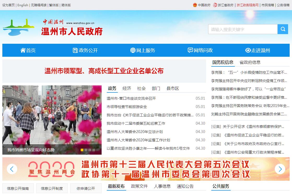 温州,简称“温”或“瓯”,是浙江省地级市,长江三角洲中心区27城之一,国务院批复确定的中国东南沿海重要的商贸城市和区域中心城市。截至2018年,全市下辖4个区、5个县、代管3个县级市,总面积11612.94平方千米,建成区面积260.62平方千米。2019年末全市常住人口为930万人,其中市区人口305.2万人;城镇化率为70.5%,全市户籍总人口832.4万人。温州地处中国华东地区、浙江东南部、瓯江下游南岸,东濒东海、南毗福建、西及西北部与丽水市相连、北和东北部与台州市接壤,是中国数学家的摇篮、中国南戏的故乡、中国海鲜鸡蛋之乡,温州人被国人称之为东方犹太人。温州是国家历史文化名城,素有“东南山水甲天下”之美誉。温州古为瓯地,也称东瓯,公元323年建郡,为永嘉郡,传说建郡城时有白鹿衔花绕城一周,故名鹿城。唐朝时(公元675年)始称温州,至今已有2000余年的建城历史。温州是中国民营经济发展的先发地区与改革开放的前沿阵地,在改革开放初期,以“南有吴川,北有温州”享誉全国。2017年中国百强城市排行榜排37位。2018年,温州市生产总值(GDP)6006.2亿元,比2017年增长7.8%。2019年,全年全市实现生产总值(GDP)6606.1亿元,按可比价计算,同比增长8.2%。2018年12月,温州入选2018中国大陆最佳地级城市30强。