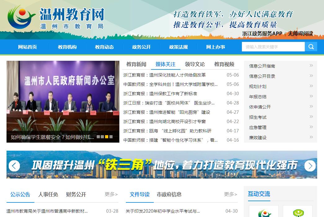 温州市教育局主要职责:一、贯彻执行我国教育有关法律法规和方针政策;研究全市教育改革与发展的重大问题;指导和协调各地、各部门有关教育工作。二、组织实施“科教兴市”、“教育强市”战略,研究拟订全市教育事业发展规划,确定教育事业发展重点、规模、速度和步骤,编制教育年度计划;指导、协调和检查教育规划、计划的实施工作;负责提升教育服务经济社会发展能力,扩大教育公共服务。三、负责综合管理和指导全市基础教育、职业教育、成人教育、特殊教育、学前教育;统筹推进全市社区教育和终身教育工作;负责管理和指导高等教育、中等教育工作;大力推进以就业为导向的职业教育发展与改革;全面推进民办教育综合改革,管理和指导全市民办教育;宏观管理全市语言文字工作,指导、督促和检查各级各类学校推广普通话和使用规范汉字工作。四、主管全市教师工作,组织实施教师资格制度,统筹规划并指导学校教师和管理队伍建设工作;受市职称改革办公室委托,组织教育系统教师职称评审和指导教师及其它专业技术职务的聘任工作。五、负责全市中小学校、幼儿园思想政治教育工作;指导全市各级各类学校德育、体育、卫生、美育、劳动教育、安全教育和国防教育等工作;负责校园安全防范、综合治理和稳定工作;协助有关单位做好学校共青团、少先队和关心下一代工作;指导驻温高校的思想政治工作。六、负责全市各级各类学校招生工作的宏观管理和指导;负责全市师范类毕业生就业指导工作。七、指导全市教育教学科学研究工作。八、负责统筹管理市直教育系统经费,会同有关部门拟订有关教育经费筹措政策、学校收费政策;进一步拓宽教育融资渠道,整合资源,加快学校建设;监督全市教育经费的筹措和使用情况,并负责教育系统内部审计工作。九、管理全市教育系统对外交流和国际合作工作,促进国际间及与香港、澳门特别行政区及台湾地区教育工作的友好往来。十、管理和指导市直属学校教育教学、学生工作和组织人事工作;负责市直属学校(单位)的干部队伍建设;管理和监督市直属学校(单位)的财务、基建、国有资产;负责指导全市校办产业和勤工俭学工作;指导全市各级各类学校教学仪器和图书设备的配备工作。十一、负责全市教育督政和督学工作,对市政府有关职能部门、下级政府、各级各类示范学校、市直各类学校(单位)的教育工作进行检查、督导和评估;完成国家教育督导团、省教育督导室和市政府交托的有关督导工作。十二、承办市政府交办的其他事项。