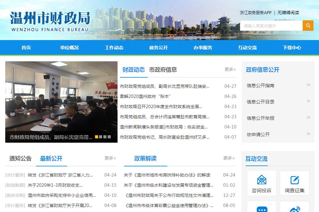温州市财政局主要职责:(一)分析预测宏观经济形势,参与制定有关宏观经济政策,提出运用财税政策实施宏观调控和综合平衡社会财力的建议,研究财政发展战略,拟订和执行财政分配政策,完善鼓励公益事业发展的财税政策。(二)贯彻执行国家、省、市的财政、税收、财务、会计、行政事业单位国有资产管理等法律、法规和方针、政策及其他有关政策。(三)负责各项财政收支管理。负责编制市级年度预决算草案并组织执行。受市政府委托,向市人大报告全市和市级预算及执行情况,向市人大常委会报告决算。组织制定经费开支标准、定额,负责审核批复部门(单位)的年度预决算。完善市对区的转移支付制度,大力推动全市乡镇财政工作。(四)负责政府非税收入管理,拟订政府非税收入管理制度和政策。负责政府性基金管理,按规定管理行政事业性收费。管理财政票据。(五)组织制定国库管理制度和国库集中收付制度,指导和监督国库业务,按规定开展国库现金管理工作。(六)负责全市政府采购监督管理。负责政府采购对外事务。负责市区党政机关和事业单位小汽车编制及控购管理工作。(七)负责组织制定行政事业单位国有资产管理制度,按规定管理行政事业单位国有资产。制定需要全市统一规定的开支标准、支出政策和管理制度。负责财政预算内行政事业单位和社会团体的非贸易外汇管理。(八)负责审核和编制国有资本经营预决算草案,制定国有资本经营预算的制度和办法,收取市本级企业国有资本收益,制定并组织执行企业财务制度,按规定管理金融类企业国有资产,参与拟订企业国有资产管理相关制度。(九)负责办理和监督市本级财政的经济发展支出、市本级政府性投资项目的财政拨款,参与拟订建设性投资的有关政策,制定基本建设财务制度,负责有关政策性补贴和专项储备资金财政管理工作。(十)负责制定市级农业综合开发政策,负责全市农业综合开发管理工作。(十一)负责审核和编制社会保障预决算草案,制定社会保障资金(基金)财务制度和管理办法,参与拟订社会保障政策,管理市级各项社会保障支出。(十二)贯彻执行政府债务管理的制度和政策,统一管理政府内外债;参与研究利用外资的有关政策,管理国际金融组织和外国政府的贷(赠)款业务。(十三)管理和指导全市的会计、资产评估和社会审计等工作;依法对注册会计师、注册资产评估师、会计师事务所、资产评估事务所等中介机构和注册会计师协会、资产评估协会等行业自律管理组织进行监督、指导。(十四)管理市级各项财政支出,提出优化财政支出结构的政策建议,组织开展财政资金绩效评价、分析;监督全市财税法规、政策的执行情况,反映财政收支管理中的重大问题,提出加强财政管理的政策建议,组织实施全市财政监督检查工作。(十五)组织和管理全市财政人员业务培训,制定教育培训规划;开展财税政策和财税管理科学研究工作,指导市级财税、财会社会学术团体的工作;负责财政信息管理系统和财政宣传工作。(十六)承办市政府交办的其他事项。