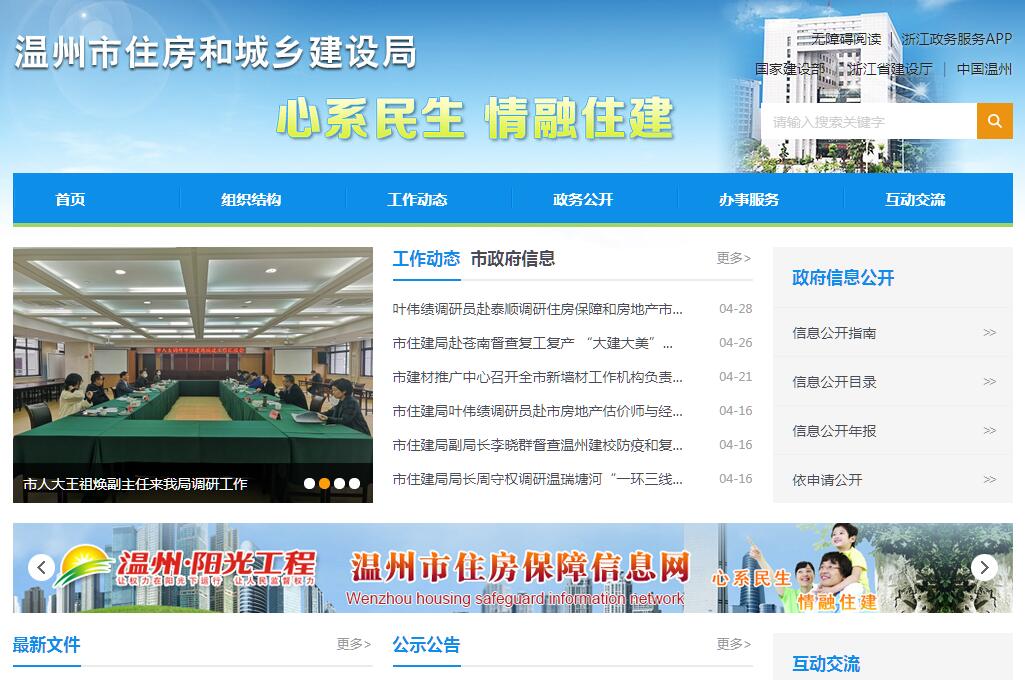 温州市住房和城乡建设局主要职责:(一)起草我市住房和城乡建设地方性法规、规章和政策,组织编制并指导实施住房保障、城市基础设施建设、房地产业、 建筑业、勘察设计咨询业、建筑节能等专项规划、发展规划和年 度计划,研究住房和城乡建设的重大问题。(二)牵头监督指导保障性安居工程建设,负责城镇低收入 住房困难家庭基本住房保障工作。会同有关部门承担保障性安居 工程资金安排等相关工作。指导住房制度改革,监督住房公积金 管理。(三)负责房地产市场监督管理。负责房地产开发、房屋交 易、房屋租赁、房地产估价与经纪的监督管理。组织开展房地产市场监测分析。(四)负责国有直管公房的监督管理。负责国有土地上房屋 征收补偿的政策制定、指导实施和监督管理。负责物业维修资金 使用的监督管理。指导物业管理、房屋白蚁防治和房屋使用安全 管理等工作。(五)指导监督城市市政公用、园林绿化等城市基础设施建 设。会同编制年度城市建设和资金计划。参与推进城市化工作。 指导历史文化名城名镇名村保护、城市地下空间开发利用建设管 理、城市雕塑建设等工作。(六)参与农村人居环境提升相关工作,参与乡村振兴战略 和美丽乡村建设。指导农村住房设计、建设、安全管理及危房改造。(七)制定建筑市场制度和信用标准并监督执行。组织推进建筑工业化、工程总承包、全过程工程咨询。指导建设工程招投 标、施工许可、工程监理、合同管理。指导监督工程建设标准定 额实施和工程造价计价,组织发布工程造价信息。(八)负责房屋建筑工程、市政公用工程、城市园林绿化工 程的质量和安全管理。组织推进工程质量安全标准化管理和品牌 工程创建工作。组织或参与建筑工程质量事故、安全事故的调查 处理。指导城市建筑工地涉及的污染防治工作。(九)负责住房和城乡建设行业科技进步、工程设计和建筑 节能工作。会同有关部门拟订建筑节能与绿色建筑的政策、规划并组织实施,推进住房和城乡建设领域科技进步、建筑节能工作。负责建设工程消防设计审查验收。负责应建防空地下室的民用建 筑项目报建审批。(十)负责建筑业、房地产业、勘察设计业、物业服务业等 行业管理。负责企业资质管理、人员职业资格管理及执业注册管 理。指导住房和城乡建设行业的职业教育与培训工作。指导或组 织对住房和城乡建设领域违法违规行为进行查处。(十一)承办市委、市政府交办的其他任务。