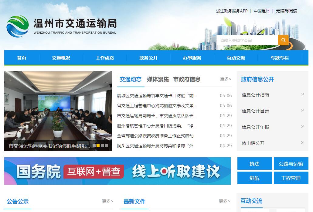 温州市交通运输局主要职责:(一)贯彻执行国家、省有关公路、水路、港口等交通运输行业的法律法规和发展战略、方针政策;制订我市交通运输行业的发展战略和产业政策,并监督执行。(二)负责编制全市公路、水路、城市公共交通、重点交通枢纽和站场的行业发展规划;参与拟订物流业发展战略和规划;制订交通运输固定资产投资、运输、交通科技教育的中长期规划和年度计划,并监督实施;会同有关部门组织编制综合运输体系规划,并负责涉及综合运输体系的规划协调工作。(三)负责全市公路、水路运输市场监管。负责道路、水路运输及相关业务、港口、城市公共交通、汽车租赁、搬运装卸、机动车检测和维修、运输技术规范、汽车驾驶学校和驾驶员培训的行业管理;负责路政、运政、港政、航政的监督管理;参与协调各种运输方式的综合平衡,引导运输结构的优化;指导道路、水路运输服务行业和出租车行业管理工作。(四)负责全市公路、水路建设市场的监管。负责交通基础设施及其配套项目的建设、养护的监督管理;实施对公路、水路、港口建设市场和建设项目的工程质量、安全生产监管;会同有关部门管理交通运输基础设施和维护;指导和监督农村公路规划、建设、养护管理工作。(五)负责公路通行费、港航非税征收的监管和内部审计;承担全市所辖高速公路行业管理。(六)负责授权范围内国有资产的监管;指导交通行业的体制改革工作。(七)指导全市交通运输业的行业安全生产和应急管理工作;指导船舶、海上设施和船用产品的检验工作;协调辖区内国家重点物资运输和紧急客货运输。(八)指导交通运输信息化建设和交通行业科技开发与科技攻关,推动行业技术进步;监督实施交通行业技术标准和规范;协调交通行业质量、环保、节能工作。(九)指导交通建设融资平台和融资机制的建设;会同有关部门管理对外交通运输经济技术的合作与交流。(十)指导和协调邮政、海事、海上救助、航标等工作;指导县(市、区)交通运输主管部门业务工作。(十一)按权限管理局属单位领导干部;组织指导全市交通行业职业教育培训工作;负责组织交通水利工程专业技术人员职称评审。(十二)承担市交通建设工作领导小组办公室日常工作。(十三)承办市政府交办的其他事项。