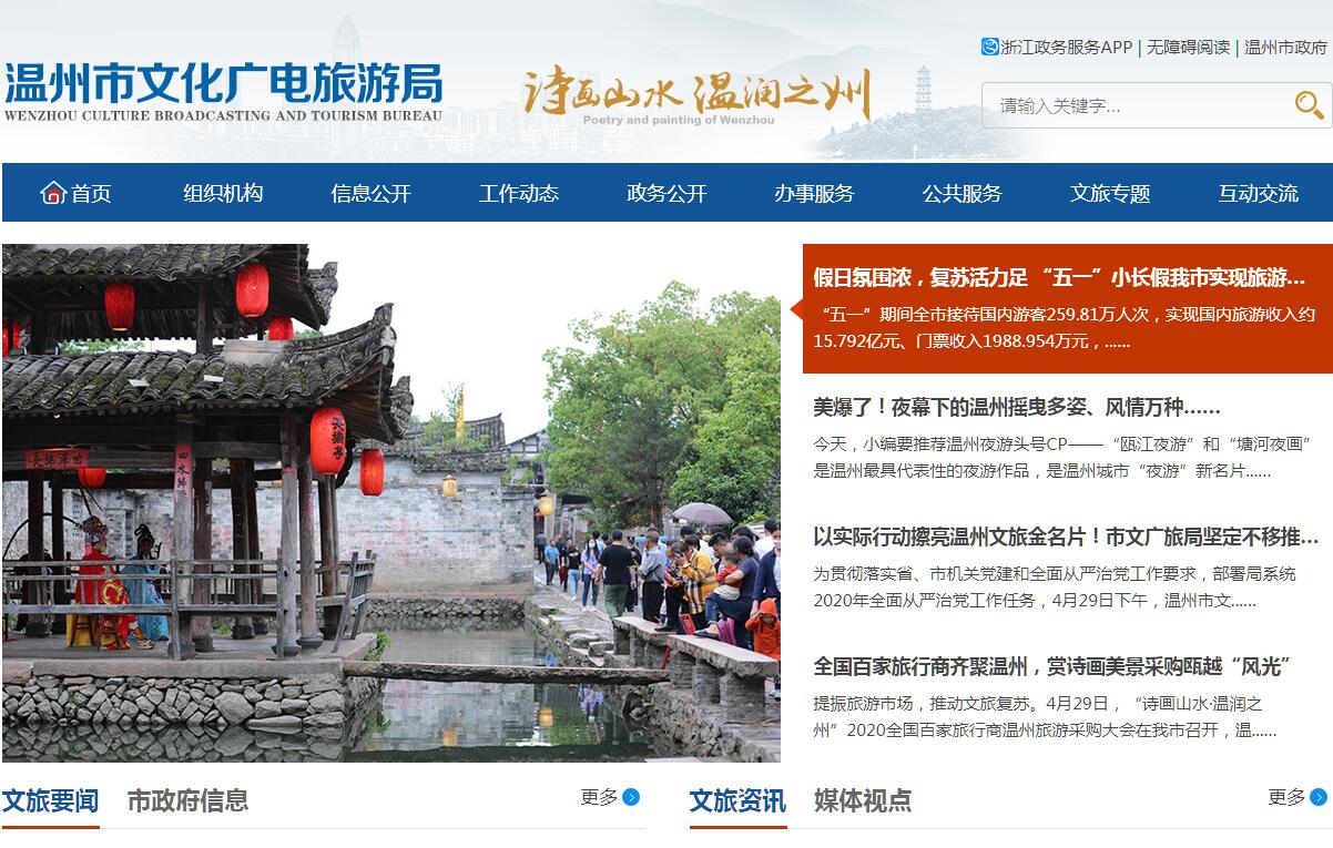 温州市文化广电旅游局贯彻落实党中央、省委和市委关于文化、广播电视、旅游、文物工作的方针政策和决策部署,在履行职责过程中坚持和加强党对文化、广播电视、旅游和文物工作的集中统一领导。其主要职责是:(一)研究拟订文化、广播电视、旅游和文物规范性文件草案和政策措施。(二)统筹规划全市文化事业、文化产业相关门类、广播电视行业、旅游业和文物事业发展,拟订发展规划并组织实施,促进文化和旅游融合发展,推进文化、广播电视、旅游和文物体制机制改革。(三)践行社会主义核心价值观,把握正确导向,指导、管理全市文艺事业,指导具有导向性代表性示范性文艺作品的创作生产,推动各门类、各艺术品种发展。指导、协调全市性重大文化和旅游活动。(四)负责全市文化、广播电视、旅游和文物公共事业发展,推进全市公共文化、广播电视、旅游和文物服务体系建设,指导基层设施建设,深入实施惠民工程,统筹推进基本公共服务标准化、均等化。(五)组织开展非物质文化遗产保护与利用工作。指导全市非物质文化遗产调查、记录、确认和建立名录。指导非物质文化遗产研究、宣传和传播工作。推动优秀传统文化传承发展。(六)组织实施文化、旅游和文物资源普查、挖掘、保护和利用工作。指导、推进全域旅游。指导文化、广播电视、旅游和文物重大项目建设,指导文化产业相关门类和旅游产业结构优化升级,促进文化和旅游产业融合发展、高质量发展。(七)拟订全市广播电视相关政策、规划和行业标准并组织实施。负责广播电视阵地管理,负责对广播电视机构进行业务指导和行业管理,监管监测广播电视节目、网络视听节目、广告创作和播出,指导实施广播电视节目评价工作。监督指导全市广播电视安全播出工作。(八)制定全市文化和旅游市场发展开发战略并组织实施,监督管理文化、广播电视和旅游市场主体经营行为,依法规范文化、广播电视和旅游市场,指导推动文化、广播电视和旅游企业质量管理与品牌培育,推进行业精神文明和信用体系建设。指导全市文化市场综合执法工作,指导全市文化、广播电视、旅游和文物行业安全稳定工作和安全监督管理。(九)指导、管理全市文化、广播电视、旅游和文物对外及对港澳台交流、合作和宣传、推广工作,组织大型对外及对港澳台交流活动。指导、推进全市文化、广播电视、旅游和文物领域科技创新发展,推进数字化、信息化、标准化建设。(十)协调全市文物管理、保护、利用、安全工作和博物馆业务工作,负责管理全市考古工作,监督管理全市各级文物保护单位和其他不可移动文物。承担各级文化遗产项目和文物保护单位的申报和管理工作。(十一)完成市委、市政府交办的其他任务。