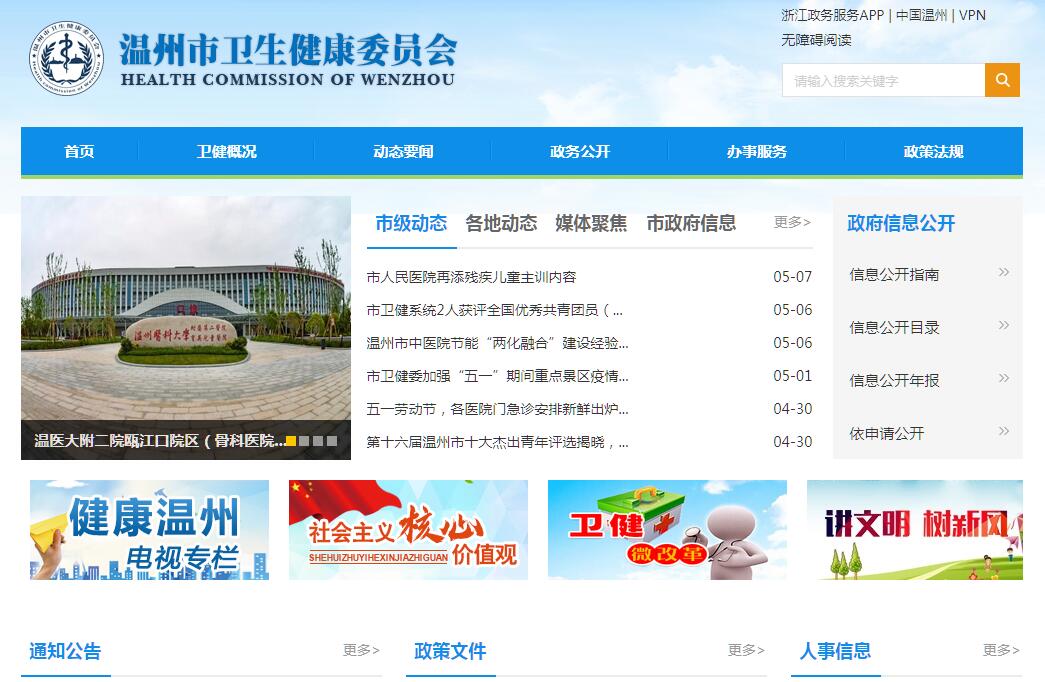温州市卫生健康委员会主要职责:(一)贯彻执行国家及省、市有关卫生和计划生育工作的法律法规和方针政策;组织编制并实施卫生和计划生育事业的发展战略、总体规划和年度计划;依法组织制定卫生和计划生育专项规划、地方标准和技术规范,指导、监督执行情况;统筹规划卫生和计划生育服务资源配置,指导编制、实施基层卫生和计划生育规划。(二)负责制定疾病预防控制规划、免疫规划和严重危害人民健康的公共卫生问题的干预措施并组织落实。制定卫生应急预案,负责突发公共卫生事件监测和风险评估,组织和指导突发公共卫生事件预防控制和各类突发公共事件的医疗卫生救援,协助有关部门对安全事故现场实施紧急处置、救护以及防疫处理;负责报送传染病疫情信息以及发布突发公共卫生事件应急处置信息。(三)负责职责范围内的医疗卫生、职业卫生、精神卫生、传染病防治、生活饮用水卫生、爱国卫生和计划生育的监督管理;指导开展公共场所卫生、学校卫生监督管理;组织开展食品安全风险监测、评估,承担食品安全企业标准备案工作。(四)指导全市基层卫生、计划生育和妇幼卫生服务体系建设,推进基本公共卫生和计划生育服务均等化,完善基层运行新机制。(五)负责全市医疗机构和医疗服务全行业管理。制定医疗机构以及医疗服务、医疗技术、医疗质量、医疗安全和采供血机构管理的标准规范并组织实施;制定卫生和计划生育专业技术人员执业规则和服务规范并组织实施;建立医疗服务评价和监督管理体系。(六)负责推进公立医院改革,建立以公益性为导向的绩效考核和评价运行机制,提出医疗服务和药品价格政策的建议。鼓励和引导社会力量举办医疗机构,促进非公立医疗机构健康规范发展。建设和谐医患关系,维护良好医疗秩序。(七)负责组织实施国家基本药物制度相关政策与规定。负责医疗机构药品、医疗器械、计划生育药具集中采购的组织实施与监督管理。负责卫生和计划生育事业经费的预决算管理,制订卫生和计划生育事业经济政策,履行系统单位内部审计工作。(八)负责落实生育政策,组织实施促进出生人口性别平衡的政策措施,组织监测计划生育发展动态,提出发布计划生育安全预警预报信息建议。制定计划生育技术服务管理制度并监督实施。制定优生优育和提高出生人口素质的政策措施并组织实施,推动实施计划生育生殖健康促进计划,降低出生缺陷人口数量。(九)组织建立计划生育利益导向、计划生育特殊困难家庭扶助和促进计划生育家庭发展等机制。负责协调推进有关部门、群众团体履行计划生育工作相关职责,建立与经济社会发展政策的衔接机制,提出稳定低生育水平政策措施。(十)制定流动人口计划生育服务管理制度并组织落实,开展流动人口动态监测工作,推动建立流动人口信息共享、公共服务以及区域协作机制。(十一)负责指导全市卫生和计划生育人才队伍建设。建立完善住院医师、专科医师规范化培训制度并组织实施,加强全科医生等亟需紧缺专业人才培养。指导基层卫生和计划生育人员岗位培训工作。(十二)组织实施卫生和计划生育相关科研项目,组织开展重点学科建设。参与制定医学教育发展规划,协同指导院校医学教育和计划生育教育,组织实施毕业后医学教育和继续医学教育。(十三)完善卫生和计划生育综合监督执法体系,规范执法行为,监督检查法律法规和政策措施的落实,组织查处重大违法行为。监督落实计划生育“一票否决制”。(十四)负责卫生和计划生育宣传、健康教育、健康促进和信息化建设等工作,依法组织实施统计调查。(十五)组织实施相关国际交流合作与援外、对口支援工作。(十六)依法管理全市中医药工作,指导中医药、民族医药和中西医结合统筹发展。(十七)负责市保健委员会确定的保健对象医疗保健工作,负责重要会议和重大活动的医疗保障工作。(十八)负责管理市级卫生和计划生育事业单位(以下称直属单位);负责指导直属单位的安全生产管理工作。承担市爱国卫生运动委员会、市公共卫生委员会以及市人口和计划生育领导小组的日常工作。(十九)承办市政府交办的其他事项。