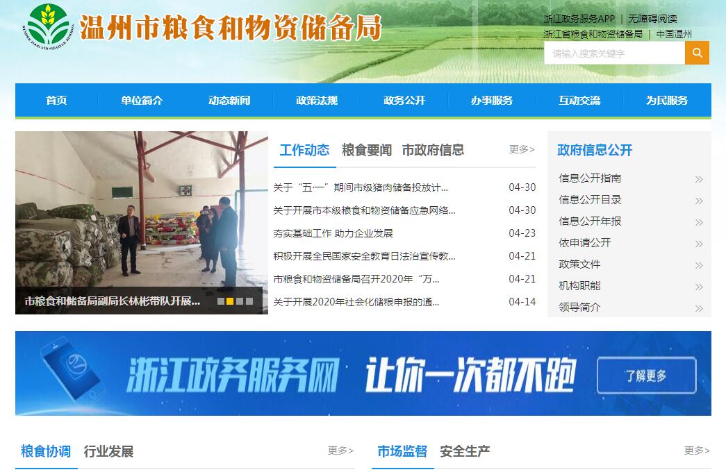 温州市粮食和物资储备局贯彻落实党中央和省、市委关于粮食和物资储备工作的方针政策和决策部署,在履行职责过程中坚持和加强党对粮食和物资储备工作的集中统一领导,构建统一的粮食和物资储备体系,提升储备应对突发事件的能力。其主要职责是:(一)起草全市粮食流通和物资储备管理规范性文件。提出全市粮食流通和物资储备体制改革方案并组织实施。(二)提出全市粮棉肉糖等重要物资储备规划、市级储备品种目录建议。根据全市储备总体发展规划和品种目录,组织实施全市重要储备物资和救灾储备物资的收储、轮换和日常管理,落实有关动用计划和指令。(三)制定全市粮食流通行业发展规划、政策,组织实施粮食流通和物资储备有关标准、粮食质量标准和有关技术规范并监督执行。(四)管理全市粮食和棉花、肉类、食糖等物资储备,负责全市粮食流通行业管理,负责市级粮棉肉糖储备管理。会同有关部门研究提出市级储备粮的规模、总体布局和动用建议并组织实施。负责提出粮食购销政策并组织实施。指导和协调县级粮食和物资储备部门的地方储备粮管理工作,督促指导各地落实储备任务。承担全市粮食流通市场调控的具体工作。负责军粮供应管理工作。承担全市粮食安全工作协调小组的日常工作。(五)根据全市储备总体发展规划,统一负责储备基础设施建设和管理。拟订全市储备基础设施、粮食流通设施建设规划并组织实施,监督检查有关储备基础设施和粮食流通设施市级投资项目。(六)负责对管理的政府储备、企业储备以及储备政策落实情况进行监督检查。负责全市粮食流通、加工行业安全生产监督管理。负责粮食流通监督检查,负责全市粮食收购、储存、运输环节粮食质量安全和原粮卫生的监督管理,组织实施全市粮食库存检查。承担市级粮食和物资储备承储单位安全生产的监管职责。(七)负责全市粮食和物资储备统计工作。监测粮食和重要物资供求变化并预测预警。负责粮食和物资储备的宣传工作。负责全市粮食和物资储备的对外交流与合作。(八)完成市委、市政府交办的其他任务。