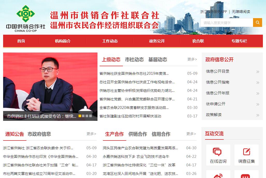 温州市供销合作社联合社(农合联)是全市供销合作社的联合组织,是市政府直属事业单位,参照公务员法管理。全市系统由市社本级、县级供销社和基层供销社三级体系组成。市供销社辖全市系统2市4区5县供销合作社,县属企业148家,县属基层供销社92家,基层社经营网点980个。全市系统共有员工26738人,其中供销社员工17172人(含离退休人员5810人),归口集体企业职工9566人,(含退休职工5065人)。2017年全辖实现总经营收入220.64亿元,同比增长7.3%,利润总额是9467万元。市供销社(农合联)主要职责有:(1)研究制定全市供销合作社发展战略和发展规划,指导供销合作社系统的改革和发展;(2)组织协调农业生产资料的供应和各项为农服务工作;(3)维护各级供销合作社组织及其所办企业、专业合作社组织和全体社员的合法权益;(4)协调同有关部门的关系,指导社办企业和基层社的业务活动,促进城乡物资交流,开拓农村市场;(5)宣传贯彻市委、市政府有关农村经济工作的方针政策,参与组织兴办各种农村专业合作社和专业协会;(6)受市政府委托,管理市农信担保有限公司;(7)代表本级联合社,参加上级联合社的各项活动;(8)行使市本级社有资产的所有权代表和管理者职能,负责监督社有资产的增值保值;(9)承办市委、市政府交办的其他事项。近年来,我市供销社以科学发展观为指导,围绕服务“三农”宗旨,加快农村现代流通网络建设,发展农村合作经济组织,探索农村金融服务,抓好再生资源市场管理,大力开展各种农业社会化服务,增强专业服务能力和综合服务功能,在推进新农村建设和城乡统筹改革发展方面发挥了重要的作用。农业生产资料、日用消费品、农副产品购销、再生资源回收利用等“四大网络”加快发展,至2015年底,已发展连锁企业44家,各类配送中心32家;连锁经营网点2012个,覆盖全市近1/3的建制村。全年连锁企业销售额216536万元,其中:消费品销售额60538万元、农资类销售额50597万元、再生资源销售额11886万元、烟花爆竹销售额1870万元、农副产品销售额91644万元;全市系统已发展农民专业合作社684家,入社会员1.6万户,带动农户9万户,其中市级示范性专业合作社52家,省级示范性专业合作社21家,30个专业合作社列入全国总社“千社千品”富民工程,有力地提高了农业组织化程度。已建办农村综合服务社141家;其中以“两店”(日用小超市和农资经营部)为基础、具有农村社区服务中心性质的示范性农村综合服务社8家。发展农村金融服务业,开展农信担保业务,至2011年底全市9家由供销社管理的农信担保公司,2011年实现担保额3.2亿元,累计已为2900多家农业龙头企业、专业合作社和种养殖大户担保额13亿元(其中温州市农信担保公司2011年实现担保9307万元;成立至今累计提供贷款担保651户次,担保金额5.05亿元)有力地促进了农业发展。认真履行市政府赋予我社的市区再生资源市场管理职责,主动配合“六城联创”活动,切实抓好回收企业整治规范,按照省级再生资源回收利用体系示范城市的要求,努力推进我市再生资源回收利用体系建设。