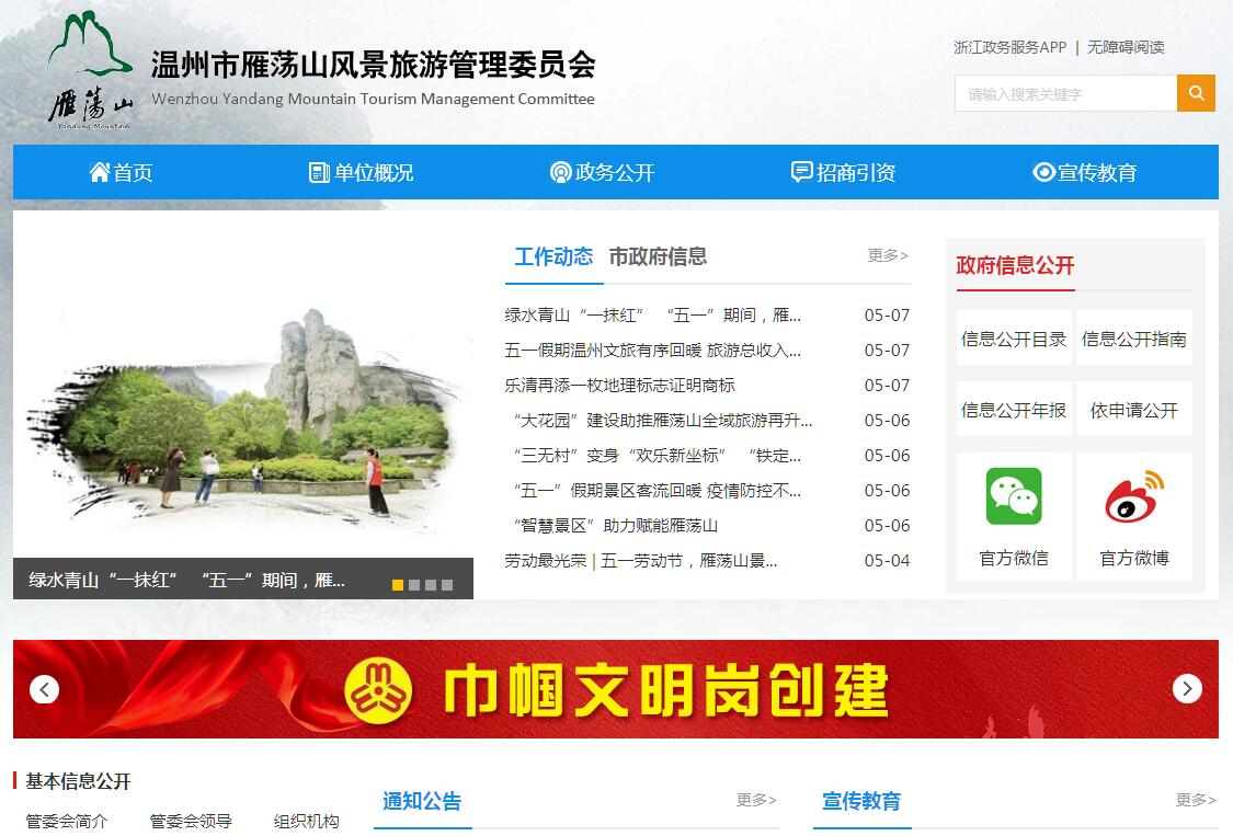 温州市雁荡山管委会主要职责:(一)宣传贯彻国家和省、市关于发展旅游业的方针、政策、措施和有关风景旅游管理的法律、法规,研究制订并组织实施雁荡山风景旅游业的发展战略、中长期规划、产业政策和年度工作计划,加快融入温州市“1+4”旅游功能区和乐清市“一心三带四区”旅游体系。(二)根据《中华人民共和国城乡规划法》、国务院《风景名胜区条例》、《浙江省风景名胜区条例》、《浙江省旅游管理条例》等法律法规和《雁荡山风景名胜区总体规划》,负责雁荡山风景旅游资源和自然生态环境的保护、规划、管理和利用等工作。(三)根据温州市、乐清市城市总体规划和经济社会发展计划,研究制订所辖区域经济社会发展计划和建设发展规划,经批准后,负责组织实施。(四)受乐清市人民政府委托,负责管理雁荡镇。负责区域内社会和行政管理等事务;承担行使委托职能过程中所产生的相应的信访、行政复议和行政诉讼等事宜。(五)负责所辖区域的城市建设和管理,按县级审批权限审批、审核投资项目,依法对所辖区域的建设项目实施管理,组织招商引资工作;统一规划、建设、管理区域内的交通、通讯、电力、供水等各项公共基础服务设施,改善城市人居环境,提升旅游要素环境,推进城市化发展和城乡统筹水平;编制区域的土地利用规划,依法管理区域的土地储备、整理和土地使用权出让、转让等工作;编制区域的总体规划、分区详规、重要的专业规划和风景名胜区的详细规划。(六)负责对雁荡镇行政区域范围内及雁荡山风景名胜区范围内的旅游基础设施建设规划,旅游产品和线路的开发,旅游对外宣传组织、旅游景点和市场的管理。(七)负责财政预决算管理、国有资产管理、财务会计监督;组织接转、管理雁荡镇的税收和有关规费;管理雁荡镇土地出让收益留成部分;编制申报所辖区域建设发展项目的投资计划和资金预算。(八)负责受温州市、乐清市有关部门授权或委托,组织、协调和实施所辖区域的有关行政审批和行政执法工作;协调管理乐清市有关职能部门设在雁荡山派驻机构的工作;负责监督和检查雁荡山旅游行业的市场秩序和服务质量;承办旅游景区行政执法和行政应诉工作。(九)负责所辖区域旅游行业的管理和规范工作,组织旅游客源市场的开发工作,指导和协调辖区内风景旅游行业的人才资源开发工作,组织指导辖区内的文化建设和精神文明建设活动。(十)承办温州市委、市政府和乐清市委、市政府交办的其他事项。