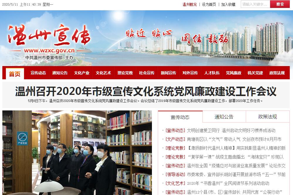 温州宣传网由温州市委宣传部主办。温州市委宣传部主要职责:(一)负责指导全市理论学习、理论宣传、理论研究工作和全市社会科学规划的制订和实施,并在政治方向和方针、政策方面实施领导;代管市社联。(二)负责全市新闻和出版工作的宏观管理;指导、协调温州日报报业集团、温州广电传媒集团、市文化广电新闻出版局等新闻、出版部门的工作,并在政治方向和方针、政策方面实施领导;联系温州日报报业集团、温州广电传媒集团、市文化广电新闻出版局。(三)负责指导精神产品的生产,并在政治方向和方针、政策方面实施领导;联系市体育局、市卫生局工作,代管市文联。(四)贯彻中央和省、市委关于思想政治工作的方针、政策,指导全市思想政治工作;承担市委企业思想政治工作领导小组办公室和配合市农办新农村建设工作。(五)贯彻中央和省、市委关于外宣工作的方针、政策,指导全市对外宣传工作;承担市委对外宣传小组办公室(市政府新闻办公室网信办)的日常工作;归口管理、统筹协调全市互联网上的新闻宣传工作。(六)贯彻中央和省、市委关于精神文明建设的方针、政策,指导全市精神文明建设日常工作;管理市精神文明建设委员会办公室。(七)受市委委托,会同市委组织部负责新闻、文化、出版和社会科学研究等部门领导干部的管理和领导班子建设;对区、县(市)委宣传部部长的任免提出意见;指导市级宣传文化单位的干部队伍建设,管理宣传文化系统各单位部分重要岗位的正科级干部;制订全市乡镇(街道)以上宣传干部和市直宣传文化系统领导骨干培训规划并组织实施;联系宣传文化系统的知识分子;会同有关部门管理全市新闻、政工职务评审工作。(八)贯彻中央和省、市委关于宣传思想文化事业发展的指导方针;组织开展对全市宣传思想工作调查研究,研究提出全市意识形态工作的重大方针、政策,指导宣传文化系统制订政策、法规;指导宣传文化系统的改革,推进文化事业和文化产业发展;管理市级文化事业建设费。(九)完成市委交办的其他任务。