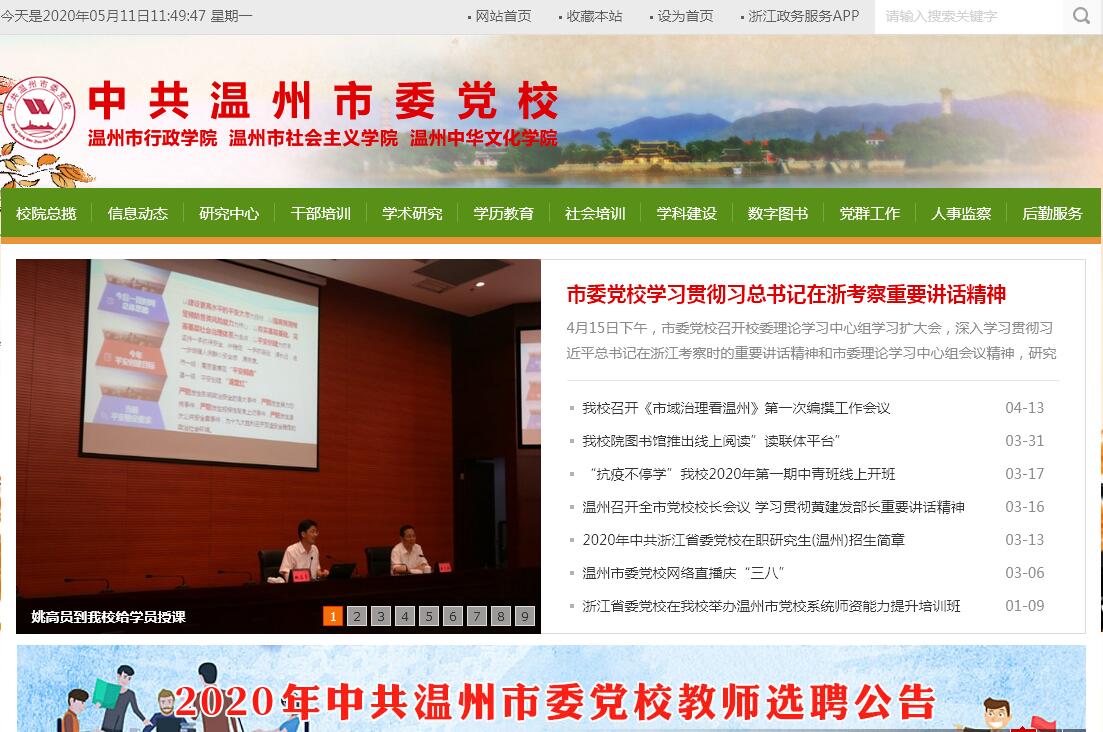 中共温州市委党校(温州市行政学院)创建于1949年9月,前身是浙江省第五区干部学校。1949年9月,中共浙江省第五区地方委员会决定成立浙江省第五区干部学校,地委书记龙跃兼任校长,校址在应道观巷原永嘉简易师范学校。1952年,干校办学规模不断扩大,校舍扩展到丁字桥、白塔巷、蛟翔巷、应道观巷8处。1973年5月18日,温州地委决定恢复温州地委党校。1981年11月3日,温州地市合并,温州地委党校改名为温州市委党校。1989年4月17日,市委、市政府批复同意市委党校兼办温州市行政学院,实行一套班子两块牌子。2002年,温州市委党校增挂市委讲师团牌子。2012年,全市党校系统办学体制改革后,学校又增挂了温州市社会主义学院、温州公共管理学院、温州市社会科学院、温州中华文化学院牌子。学校现坐落于温州市龙湾区龙永路66号,已建成的新校园占地面积200亩,建筑面积近10万平方米,达到容纳2000人的办学规模,2013年秋季已投入使用。新校园将兼顾教育机构、科研机构、党政机关的三重职能,突出生态化、园林化、信息化、智能化的建筑主题,将极大地改善学校的办学条件,完善学校的功能布局,增强学校的发展后劲,更好地发挥干部培训的主渠道、主阵地作用。在编教职员工126人,其中专兼职教师57人,具有高中级职称49人,博士6人,硕研61人,省级名师2人,省“151”人才工程3人,市“551”人才工程10人,市青年拔尖人才1 人,市宣传文化系统“四个一批”人才5人。其机构职能是:(一)根据市委对干部队伍建设的要求,有计划地轮训、培训县(处)级、科级等党员领导干部、后备干部、理论干部以及公务员、国有企业管理人员、政策研究人员等。(二)承办市委和市政府举办的专题研讨班,研讨有关的重大理论、方针、政策和现实问题,并开展多种形式的委托培训和合作培训。(三)开展马克思主义中国化最新成果的理论宣传,开展党的路线、方针、政策的宣传,开展哲学社会科学研究,对市内外重大现实问题开展理论研究,为教学和社会实践服务,并将重要成果提供给市委、市政府决策参考。(四)负责对县(市、区)委党校(行政学校)进行业务指导。(五)完成市委、市政府交办的其它任务。领导机构:目前,市委党校(市行政学院)实行校务委员会负责制。市委常委、组织部长马永良兼任党校校长。校委成员有:常务副校(院)长洪文滨,副校(院)长郑金平、蒋儒标,教育长林冬晓,校委委员付奕敏、林允舒、徐建龙。内设机构有办公室(基层工作处)、人事处(监察室)、研究室(温州发展研究中心)、机关党委、教务一处、教务二处、培训一处、培训二处、科研处(社科工作处)、党史党建教研部、经济学教研部(经济发展研究所)、政法与统战理论教研部、文化与社会学教研部(文化与社会发展研究所)、公共管理学教研部(公共管理学研究所)、信息管理处、行政处(基建处)、财务处、后勤处、图书馆、下属1个事业单位:培训会务中心。办学理念:近年来,中共温州市委党校(温州市行政学院)坚持以科学发展观为统领,深入贯彻落实两条例一纲要,按照围绕一个目标、发挥三个作用、做到五个坚持的办学理念(即紧紧围绕打造全省领先,全国一流市级党校目标,充分发挥干部培训轮训主阵地、服务中心工作重要智库和党性锻炼大熔炉作用,始终坚持质量立校、科研强校、开放办校、人才兴校和从严治校),全面推进党校事业的新发展,为构建五大发展生态,建设国际时尚智成做出积极的贡献。教学培训:中共温州市委党校(温州市行政学院)认真贯彻中央、浙江省委和温州市委关于党校(行政学院)工作的一系列方针、政策,坚持深化改革,围绕市委市政府中心工作和干部教育的实际需求,坚持全力以赴办好主体班次、千方百计拓宽发展渠道的办学思路,推进政治学、党史党建、经济学、公共管理、法学、文化学和社会学等突出党校特色的七大学科建设,努力创建一所学习型、熔炉型、活力型、服务型、和谐型的地市级党校(行政学院)。开设的主体班次有:进修(轮训)班(县<处>级领导干部进修班、公共管理进修班、)、培训班(中青年干部培训班、年轻干部培训班、处<科>级公务员任职培训班、公务员初任培训班)和围绕市委市政府中心工作举办的专题研讨班(民政综合改革、加强和创新社会管理等)。在办好干部教育培训主体班次的同时,党校(行政学院、公共管理学院)还大力拓展学历培训、部门培训和社会培训等多种办学渠道。一是学历教育系列,主要承办中央党校、省委党校在职研究生学历教育;二是部门培训系列,主要承办市内各部门、行业系统、企事业单位委托举办的各种业务培训或专题培训班次;三是社会培训系列,主要承办异地干部来温培训、军转干部考试培训、入党积极分子培训等多种培训项目。科研咨询:中共温州市委党校(温州市行政学院、温州市社会科学院)坚持科研强校方针,坚持教学、科研、咨询三位一体方针。近年来,着眼于为市委市政府决策服务,围绕温州经济社会发展中的重点、热点、难点问题,整合研究力量,扎实推进科研工作。以温州社科院、温州发展研究中心为平台,与中国社会科学院社会学研究所开展科研合作,围绕市委市政府的中心工作,聚焦学科优势,在区域经济发展、城乡统筹、金融改革、社会发展研究等方面产生了一批有较高理论和实践价值的优秀科研咨询成果。按