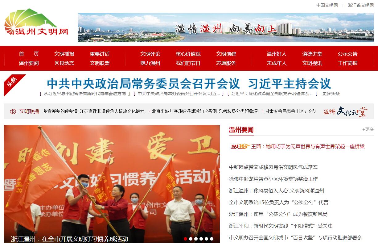 | 网站简介: 温州文明网由温州市精神文明建设指导委员会办公室主办, 是温州宣传思想战线和精神文明建设系统的门户网站,宗旨是传播文明、引领风尚。 |