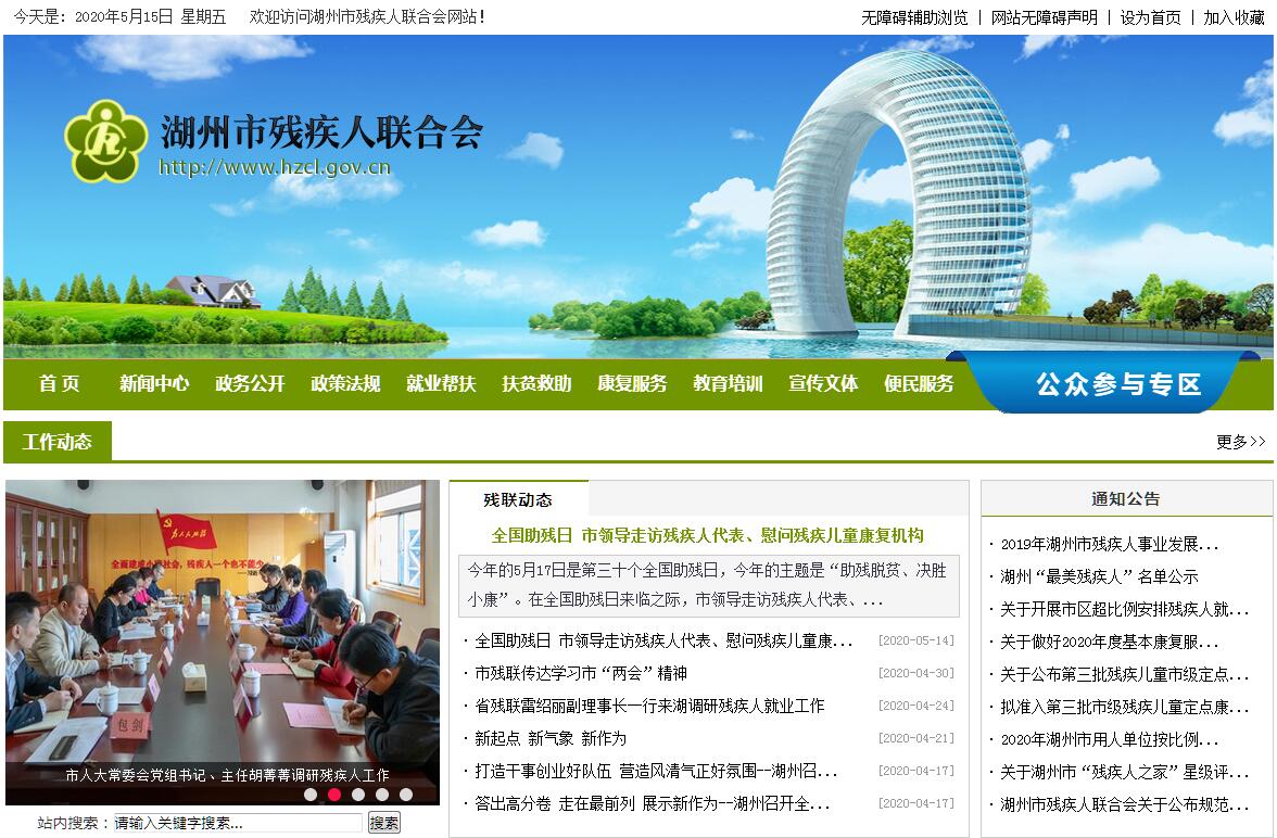 湖州市残疾人联合会是政府直属正处(县)级事业团体(内设机构为办公室、组宣联络部、康复教育部等2部1室,人员编制12人,下设康复服务中心、劳动服务中心,人员编制分别为6人。),承担政府委托的任务,管理和发展残疾人事业。其主要职责是:(一)贯彻执行党和国家有关残疾人工作的方针、政策;配合有关部门起草有关发展残疾人事业的地方性相关政策(或规定);协助政府研究制定我市残疾人事业发展规划、计划,承担相关领域的业务指导和行业管理工作。(二)管理、指导各类残疾人协会;听取残疾人意见,反映残疾人需求,维护残疾人合法权益,为残疾人服务。(三)团结、教育残疾人遵守法律,履行应尽义务,发扬乐观进取精神,自尊、自信、自强、自立,为社会主义建设贡献力量。(四)弘扬人道主义,宣传残疾人事业,沟通政府、社会与残疾人之间的联系,动员社会理解、尊重、关心、帮助残疾人。(五)开展和促进残疾人康复、扶贫、教育、劳动就业、培训、文化、体育活动、用品用具供应、福利、残疾预防和无障碍设施等工作,创造良好的环境和条件,扶助残疾人平等参与社会生活。(六)指导县、区残疾人联合会工作。(七)承担市政府残疾人工作协调委员会的日常工作,做好综合、组织、协调和服务。(八)承担市残疾人体育协会日常工作。(九)参与全市福利企业的管理、落实残疾人集中就业政策待遇。(十)开展残疾人事业的交流与合作。(十一)承担市委、市政府和省残疾人联合会交办的其他工作。