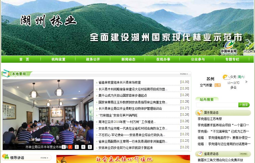 湖州市林业局主要职责:(一)负责全市林业及其生态建设的监督管理。贯彻执行国家、省有关林业及其生态建设的法律、法规和方针政策,拟订全市林业及其生态建设的政策、发展战略、中长期规划并监督实施。(二)组织、协调、指导和监督全市绿化造林工作。指导森林经营工作。指导各类公益林和商品林的培育和管理,指导植树造林、封山育林和以植树造林、封山育林等生物措施防治水土流失工作;指导国有林场、森林公园及林业工作站的建设和管理;组织和指导林木种子种苗的管理工作。承担林业应对气候变化的相关工作。(三)负责森林资源保护发展和监督管理。组织、指导全市森林资源、湿地资源调查、动态监测和评价工作;审核并监督森林资源的使用情况;组织编制森林采伐限额方案并监督实施;监督检查林木(毛竹)凭证采伐、运输;指导监督林地管理,依法承办林地征用、占用的审核审批工作。(四)组织、指导和监督陆生野生动植物资源的保护与合理开发利用以及疫源疫病监测;指导森林和陆生野生动物类型自然保护区的建设和管理;组织、协调、指导和监督全市湿地保护工作。(五)指导全市森林公安工作及公安队伍建设;指导、协调、监督破坏森林资源和陆生野生动植物资源的林业行政案件的查处工作;指导、协调、监督、检查全市森林消防、森林病虫害防治、森林植物检疫。(六)负责推进林业改革,维护农民经营林业合法权益。对集体林权制度改革方针政策的落实情况进行指导和监督;指导农村林地林木承包经营、流转及林权管理;指导监督山林纠纷调处和林地承包合同纠纷仲裁。(七)组织、指导全市林业产业发展工作。制定林业产业发展规划,指导林业特色基地、林业龙头企业和森林旅游的发展,指导林业行业协会建设,做好林业专业合作经济组织的扶持服务工作。监管国有林业资产。(八)组织、指导林业及其生态建设的科技、教育、宣传工作;协调林业系统对外交流和合作。(九)承办市委、市政府交办的其他事项。