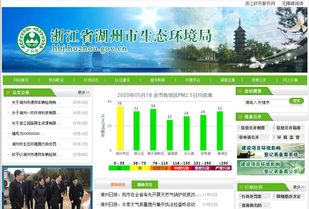湖州市生态环境局贯彻落实党中央、省委和市委关于生态环境保护工作的方针政策和决策部署,在履行职责过程中坚持和加强党对生态环境保护工作的集中统一领导。其主要职责是:(一)贯彻执行国家、省和市有关生态环境的法律法规和政策,拟订并组织实施全市生态文明建设的规划、计划和生态环境保护的规范性文件。参与起草有关地方性法规、市政府规章草案。统筹协调推进全市生态文明建设。(二)负责生态文明建设和生态环境保护方面的制度建设。组织拟订或制定有关地方标准和技术规范,并监督实施。会同有关部门编制并监督实施重点区域、流域、饮用水水源地生态环境规划和水功能区划。(三)统筹协调和监督管理生态环境保护工作。统筹协调全市重点区域、流域生态环境保护工作。组织协调环境污染事故和生态破坏事件的调查处理,指导协调突发生态环境事件的应急、预警工作,指导实施生态环境损害赔偿制度,协调解决跨区域生态环境污染纠纷。(四)监督管理减排目标的落实。根据国家和省、市核定的污染物减排指标,组织制定并监督实施污染物排放总量控制计划及相关措施,监督实施排污许可制度,实施生态环境保护目标责任制。组织协调应对气候变化和温室气体减排工作。(五)负责环境污染防治的监督管理。制定全市大气、水、土壤、噪声、光、恶臭、固体废物、化学品、机动车等的污染防治管理制度并监督实施。组织、指导城乡生态环境综合整治工作,监督、指导农业面源污染治理工作。组织协调区域大气污染联防联控工作。会同有关部门监督管理饮用水水源地生态环境保护工作。(六)指导、协调和监督生态保护修复工作。监督管理对生态环境有影响的自然资源开发利用活动、重要生态环境建设和生态破坏恢复工作,以及野生动植物保护、湿地生态环境保护等工作。指导协调和监督农村生态环境保护工作,组织协调生物多样性保护工作,参与生态保护补偿工作。(七)负责辐射环境安全的监管工作。监督管理核技术应用、电磁辐射、放射源和放射性废物,以及伴有放射性矿产资源开发利用中的污染防治工作。承担辐射环境事故应急处理工作。(八)负责生态环境准入的监督管理。拟订并组织实施生态环境准入清单,受市政府委托组织开展对重大经济和技术政策、发展规划以及重大经济开发计划的环境影响评价工作。按规定审批或审查开发建设区域、规划、项目环境影响评价文件。(九)负责生态环境监测工作。组织开展生态环境相关监测。组织开展生态环境质量状况调查评价、预警预测,统一发布全市环境状况公报和重大生态环境信息。负责生态环境信息化工作,承担国家生态环境监测网相关工作。(十)组织、协调生态环境保护督察工作。协调市级有关部门、区县配合开展生态环境保护督察工作。(十一)负责生态环境保护综合行政执法。按照生态环境保护综合行政执法改革要求,负责、指导和监督相关领域综合行政执法,负责全市生态环境保护综合行政执法队伍建设工作。(十二)组织开展生态环境科技工作。组织生态环境科学研究和技术工程示范,推动生态环境技术管理体系建设。开展生态环境交流合作,配合开展有关生态环境国际条约的履约工作,参与处理涉外生态环境事务。(十三)会同有关部门管理生态环境有关资金。提出生态环境方面政府财政性资金安排的建议,配合有关部门组织实施投资项目,并监督管理资金使用。参与指导循环经济和生态环保产业。(十四)组织开展和指导生态环境宣传教育工作。制定并组织实施生态环境保护宣传教育规划,引导、鼓励社会组织和公众参与生态环境保护。(十五)负责、指导本系统安全生产和消防监督管理工作。(十六)完成市委、市政府和省生态环境厅交办的其他任务。