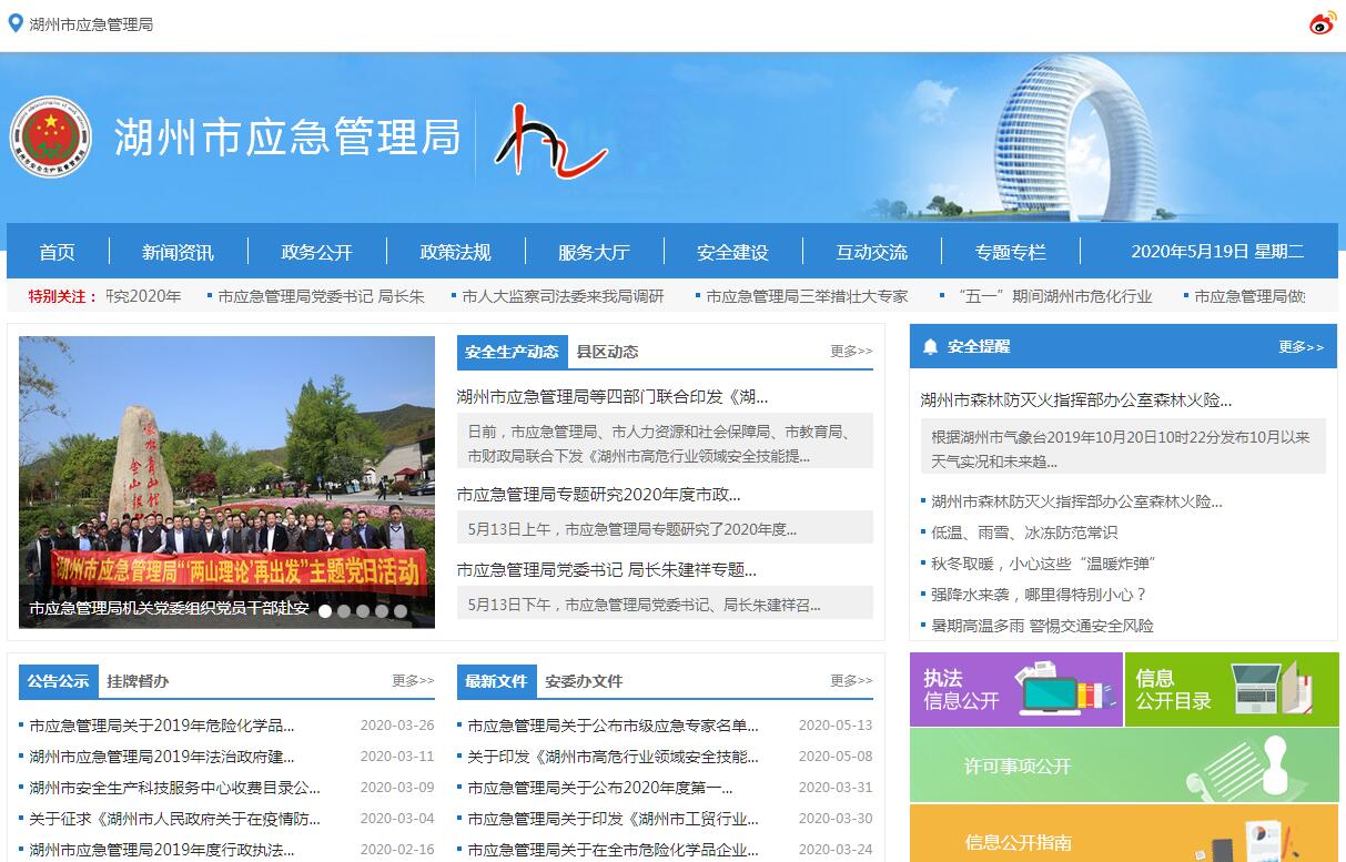 湖州市应急管理局主要职责:1.贯彻执行国家、省和市有关法律法规和政策,拟订并组织实施有关应急体系建设、安全生产和综合防灾减灾的规 划、计划,以及有关政策和制度。参与起草有关地方性法 规、市政府规章草案。2.负责应急管理工作,统筹协调全市各级各部门应对安 全生产类、自然灾害类等突发事件和综合防灾减灾救灾工作。负责、指导安全生产综合监督管理和工矿商贸行业安全生产监督管理工作。3.建立完善事故灾难和自然灾害分级应对制度,组织编 制全市总体应急预案和安全生产类、自然灾害类专项预案,综合协调应急预案衔接工作,组织开展并指导预案演练,指导应急预案体系建设。检查指导市级有关部门和区县政府应急预案的制定和落实,指导协调应急避难设施建设。4.建立统一的应急管理信息系统,负责信息传输渠道的 规划和布局,建立监测预警和灾情报告制度,健全生产安全事故、自然灾害信息资源获取和共享机制,统一发布灾情。5.组织、指导、协调安全生产类、自然灾害类等突发事 件应急救援,综合研判突发事件发展态势并提出应对建议。受市委、市政府授权或委托,组织开展较大事故和灾害应急 处置工作。6.统一协调指挥全市各类应急专业队伍,建立应急协调 联动机制,推进指挥平台对接,衔接解放军和武警部队参与应急救援工作。7.统筹全市应急救援力量建设,统筹指导综合性应急救援队伍,负责消防、森林火灾扑救、抗洪抢险、地震和地质灾害救援、生产安全事故救援等专业应急救援力量建设,指导并推动社会应急救援力量建设。8.按党委政府要求,组织统筹、协调指挥综合性应急救援队伍承担灾害事故的应急救援工作;监督管理消防工作, 指导消防监督、火灾预防、火灾扑救等工作。9.负责自然灾害综合监测预警工作。负责全市地震监测、安全性评价、震灾预防等工作。协调森林火灾、水旱灾害、地质灾害等防治工作。协调开展自然灾害综合风险评估工作。10.组织协调灾害救助工作,组织指导灾情核查、损失评 估、救灾捐赠工作。管理、分配中央、省下拨和市级救灾款物并监督使用。11.综合监督管理安全生产工作,指导协调、监督检查市 级有关部门和区县政府安全生产工作。组织开展安全生产巡查、考核工作。12.监督检查工矿商贸生产经营单位贯彻执行安全生产法 律法规情况,以及安全生产条件和有关设备(特种设备除 外)、材料、劳动防护用品的安全生产管理工作。组织实施安全生产准入制度。负责危险化学品安全监督管理综合工作。按照权限负责烟花爆竹禁止销售工作。13.组织、指导生产安全事故调查处理,监督事故查处和 责任追究落实情况。组织开展、指导自然灾害类突发事件的调查评估工作。14.开展应急管理、安全生产方面的交流与合作,组织参与安全生产类、自然灾害类等突发事件的跨区域救援工作。15.制定全市应急物资储备和应急救援装备规划并组织实施,会同有关部门建立健全有关应急物资储备、信息平台和 调拨方面的制度,在救灾时统一调度。16.负责应急管理、安全生产宣传教育和培训工作,组织开展应急管理、安全生产科学技术研究、推广应用以及信息化建设工作。17.组织执行国家、省应对重大以上灾害指挥部的指示、命令。承担市应对较大灾害指挥机构日常工作。指导区县对应指挥机构的工作。18.完成市委、市政府交办的其他任务。