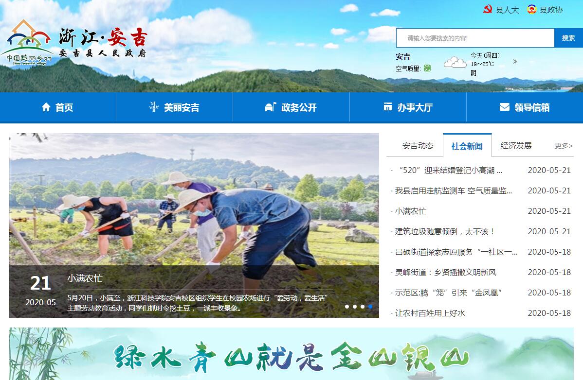 安吉县隶属浙江省湖州市,素有“中国第一竹乡、中国白茶之乡、中国椅业之乡”之称,县域面积1886平方公里,户籍人口47万人,下辖8镇3乡4街道209个行政村(社区)和1个国家级旅游度假区、1个省级经济开发区、1个省际承接产业转移示范区,是习近平总书记“绿水青山就是金山银山”理念诞生地、中国美丽乡村发源地和绿色发展先行地。2019年,全县地区生产总值469.59亿元,增长7.8%;完成财政总收入90.09亿元,增长12.5%,其中地方财政收入53.56亿元,同比增长14.2%。生态优美,环境宜居。境内“七山一水两分田”,山清水秀、风光旖旎,拥有101万亩竹林、海拔1587米的浙北第一高峰龙王山、总面积1244公顷的安吉小鲵国家级自然保护区,共有河道1633条、总长度1533公里,各类水库山塘4545座、总库容4.35亿立方米。多年来,全县森林覆盖率、林木绿化率均保持在70%以上,空气质量优良率保持在85%以上,地表水、饮用水、出境水达标率均为100%,被誉为气净、水净、土净的“三净之地”,获评全国首个生态县、联合国人居奖首个获得县。区位优越,交通便捷。地处长三角经济圈的几何中心,是上海黄浦江的源头、杭州都市圈重要的西北节点。全县拥有高速公路2条、国道1条、省道3条、县道49条,公路总里程2236公里;拥有码头16座,航道总里程50公里;拥有通用航空机场1座。未来几年,随着商合杭高铁、申嘉湖高速(二期)等工程的建成使用,综合交通网络更加完善,真正实现30分钟到杭州、湖州,90分钟到上海、苏州、南京、合肥的快捷出行。历史悠久,人文深厚。建县于公元185年,县名取自《诗经》“安且吉兮”,是古越国的重要活动地和秦三十六郡古鄣郡郡址所在地。境内的上马坎旧石器文化遗址,将浙江境内人类的历史提前到距今80万年前。全县拥有4个国保级单位,数量居全省各县(区)第一,文物蕴藏量居全国各县(区)前十位,非物质文化遗产数量在全省名列前茅。境内地域文化丰富,竹文化、茶文化、昌硕文化、移民文化互相交融,是南朝文学家吴均、艺术大师吴昌硕、林学家陈嵘的故乡。改革创新,绿色崛起。坚持改革引领,创新“两山”实践。安吉县践行“两山”理念推进美丽乡村建设做法,经中央深改委会议审议入选全国十大改革案例。2019年6月,新时代浙江(安吉)县域践行“两山”理念综合改革创新试验区总体方案经省委深改委会议审议通过并正式实施。加快高质量赶超发展,初步形成了具有地方特色的“1+2+3”生态产业体系,“1”即健康休闲一大优势产业,“2”即绿色家居、高端装备制造两大主导产业,“3”即信息经济、通用航空、现代物流三大新兴产业,三次产业比为5.9:45.1:49。目前,全县有主板上市企业5家、新三板挂牌企业14家,白茶产业品牌价值达40.92亿,椅业产业占国内市场1/3、出口市场1/2,竹产业以全国1.8%的立竹量创造了全国10%的竹业产值,集民宿、高端旅游综合体、特色小镇于一体的全域旅游全面兴起。城乡融合,社会和谐。加快“美丽乡村、美丽乡镇、美丽县城”三美共进,全力建设中国最美县域。美丽乡村创建实现全覆盖,建成精品示范村55个、乡村经营示范村15个、善治示范村34个、精品观光带4条,建成区面积达37.6平方公里。由安吉县为第一起草单位的《美丽乡村建设指南》经国家标准委员会于2015年6月发布施行,成为美丽乡村建设国家标准。勇夺省平安县十四连冠,获评全国平安建设先进县,探索走出一条以“余村经验”为典型代表的乡村治理之路。2019年城乡居民人均可支配收入分别为56954元和33488元,同比增长8.2%和9.6%,城乡收入之比达到了1.7:1。2020年是全面建成小康社会决胜之年,是习近平总书记发表“绿水青山就是金山银山”重要讲话十五周年。全县上下将始终高举习近平新时代中国特色社会主义思想伟大旗帜,在省市委的坚强领导下,不忘初心、牢记使命,坚决扛起争当践行“两山”理念样板地模范生标杆县的使命担当,深化改革创新,加强县域治理,全面推进新时代“两山”试验区建设,奋力夺取中国最美县域高质量发展新胜利!