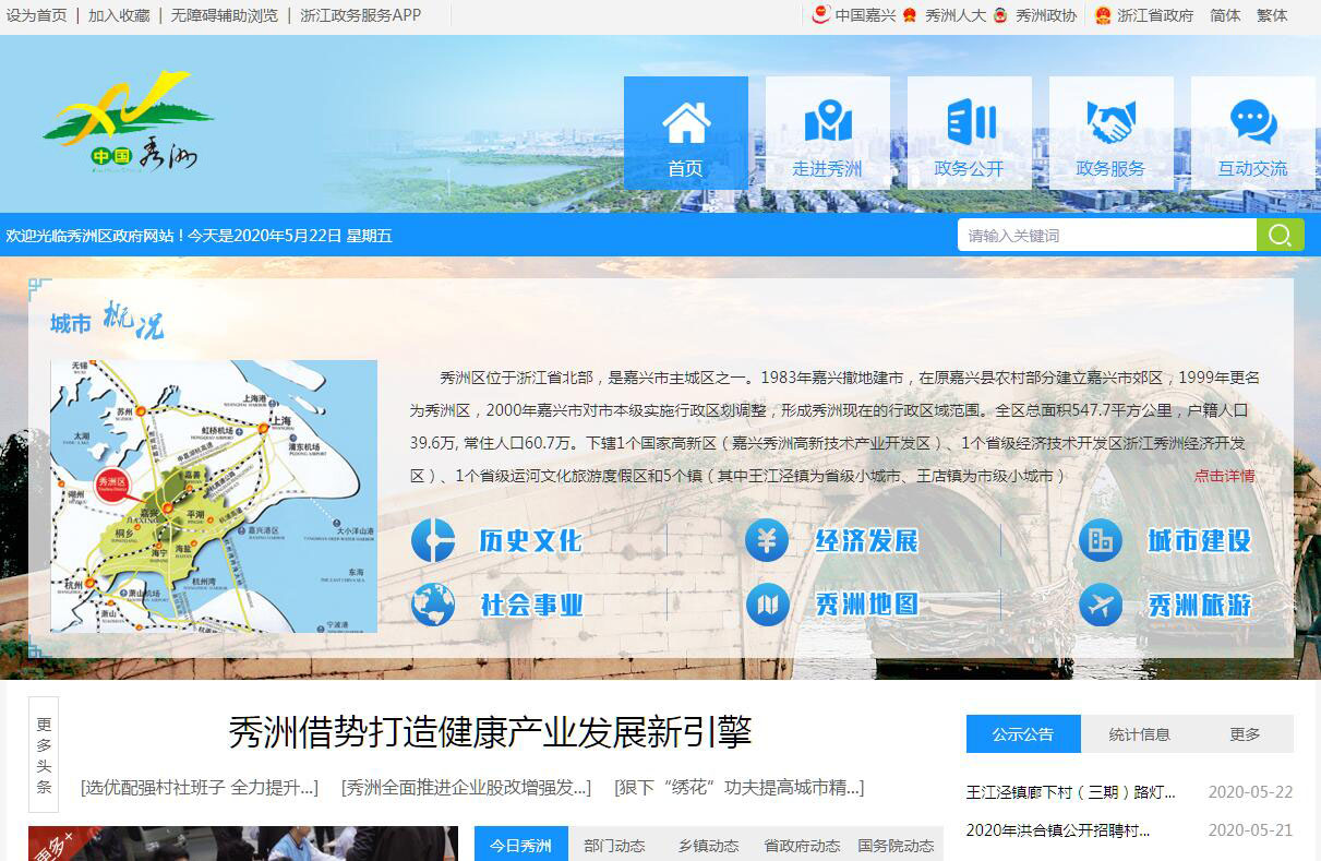 秀洲区位于浙江省北部,是嘉兴市本级的新兴城区,东邻上海,西靠杭州,南濒杭州湾,北接苏州,是长三角经济圈的黄金腹地,极具开发潜力。全区总面积547.7平方公里,户籍人口39.6万, 下辖1个国家高新区(嘉兴秀洲高新技术产业开发区)、1个省级经济技术开发区(浙江秀洲经济开发区)、1个省级运河文化旅游度假区和5个镇(其中王江泾镇为省级小城市、王店镇为市级小城市)、4个街道(其中嘉北、塘汇2个街道委托嘉兴经济技术开发区管理)。2017年,在市委、市政府和区委的坚强领导下,在区人大、区政协的监督支持下,持续深化“三年”活动,精准发力、奋力攻坚,较好地完成了区八届人大五次会议确定的年度目标任务,经济社会保持平稳健康发展。全区实现地区生产总值503.96亿元,增长7.4%。完成一般公共预算收入18.1亿元,增长10.1%。城镇居民人均可支配收入47852元,农村居民人均可支配收入30132元,分别增长8.6%和8.5%。各项安全、节能减排、生态环境指标均控制在上级下达的指标以内。全区完成固定资产投资314.76亿元,增长16.9%。宝湾物流供应链、秀洲高新装备创业中心等66个重大项目集中开工。10项省重大产业项目、20项省重点建设项目和9项省“411”重大项目完成年度投资任务,项目总数位居全市前列。全区实现合同利用外资7亿美元,实际利用外资2.3亿美元,分别增长52.1%和2.1%。调整优化体制机制,全力推进秀洲国家高新区建设,光伏小镇入选省十大示范特色小镇,光伏新能源智能制造示范区入选省2016年度智能制造示范区。实现规上工业增加值119亿元,增长6.8%,完成工业投资130.19亿元,增长16.2%。高新技术产业、装备制造业、新能源新材料产值分别增长12.9%、14%和3.3%。“两化”融合加快推进,成功创建省“两化”深度融合国家综合性示范区。完成“机器换人”投入38.1亿元,增长14.1%。“退散进集”扎实推进,淘汰落后产能涉及企业130家,腾退低效用地1332.5亩。实现服务业增加值142亿元,增长8.7%,社会消费品零售总额155.1亿元,增长10.6%。商务楼宇入驻率66.96%,楼宇税收增长明显,2017年共实现税收10.21亿元,楼宇税收贡献率为23.39%。2017年全年全区接待国内旅游人数234.78万人次,同比增长22.94%;国内旅游收入29.35亿元,同比增长24.38%。