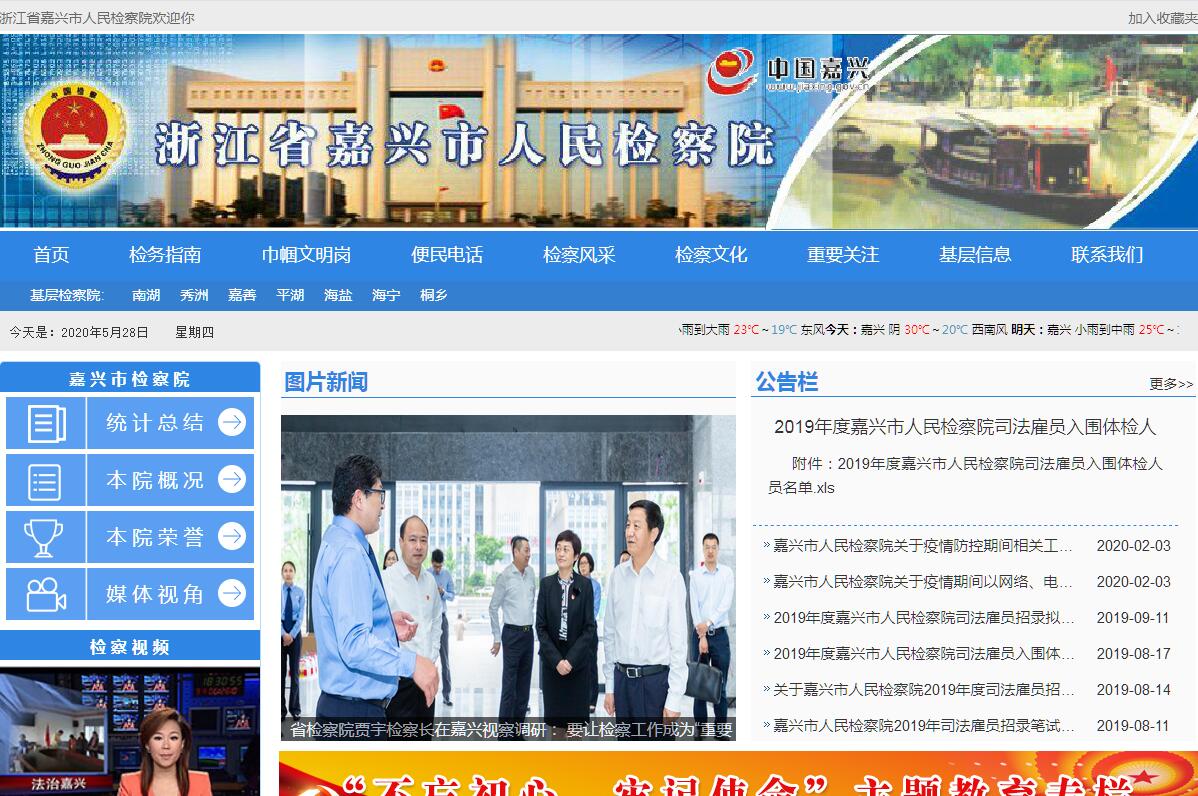 1950年9月,浙江省人民检察公署设立嘉兴专区分署(管辖范围包括今浙江省嘉兴市和湖州市)。1954年12月嘉兴专区检察分署更名为浙江省人民检察院嘉兴专区分院。十年动乱期间,嘉兴市检察机关被撤销。1978年9月,嘉兴地区重建浙江省人民检察院嘉兴地区检察分院,检察工作由此翻开了崭新的一页。1951年至1983年,孙善英、柳林、王震、乔逵、刘邦俊、施来昌历任嘉兴专区分署(院)检察长。1983年行政区划调整,撤销嘉兴地区分院建制,组建嘉兴、湖州二个省辖市人民检察院。1983年至2010年,张海江、朱立乔、王祺国、孙厚祥历任浙江省嘉兴市人民检察院检察长。2003年,建筑面积13000平方米、投资3300万元的市检察院检察综合大楼投入使用。人民检察院是国家的法律监督机关。嘉兴市人民检察院是全市检察机关的领导机关,领导全市各县(市、区)人民检察院依法履行法律监督职能,保证国家法律的统一和正确实施。其主要职责是:(一)对嘉兴市人民代表大会及其常务委员会负责并报告工作,接受市人民代表大会及其常务委员会的监督,接受上级人民检察院的领导。(二)依法向市人民代表大会和市人民代表大会常务委员会提出议案。(三)领导各县(市、区)人民检察院的工作,部署检察工作任务。(四)依法对贪污贿赂犯罪,国家工作人员的渎职犯罪,国家机关工作人员利用职权实施的非法拘禁、刑讯逼供、报复陷害、非法搜查的侵犯公民人身权利的犯罪以及侵犯公民民主权利的犯罪案件进行侦查,依法对经省级以上人民检察院批准的需要由人民检察院直接受理的国家机关工作人员利用职权实施的其他重大犯罪案件的侦查,领导各县(市、区)人民检察院的侦查工作。(五)对全市重大刑事案件依法审查批准逮捕、决定逮捕、提起公诉,领导各县(市、区)人民检察院开展对刑事犯罪案件的审查批准逮捕、决定逮捕、提起公诉工作。掌握社会治安动态,参与社会治安综合治理。(六)领导各县(市、区)人民检察院依法对刑事诉讼、民事审判和行政诉讼实行法律监督的工作。(七)对各县(市、区)人民法院已经发生法律效力、确有错误的判决或裁定,依法提出抗诉或提请抗诉。(八)对各县(市、区)人民检察院在行使检察权中作出的决定进行审查,纠正错误决定。(九)负责对市看守所和劳动教养机关的活动是否合法的法律监督;领导各县(市、区)人民检察院对刑事案件判决、裁定的执行和看守所、劳动教养机关的执法活动实行法律监督。(十)受理单位和公民的控告、申诉、举报以及犯罪嫌疑人自首,并领导各县(市、区)检察机关的举报工作。(十一)对全市职务犯罪预防工作进行研究并提出预防对策,指导各县(市、区)人民检察院职务犯罪预防工作。(十二)规划和指导全市检察机关检察技术信息工作和物证、书证、视听资料的检验、鉴定、审核工作。(十三)对检察工作中具体应用法律的问题进行研究,向立法机关和上级检察院提出立法、司法解释建议,制订全市有关检察工作的规定、办法和实施细则。(十四)负责全市检察机关队伍建设、思想政治工作和宣传工作;领导各县(市、区)人民检察院依法管理检察官及其他检察人员的工作;协同机构编制部门管理各县(市、区)检察机关的机构设置及人员编制。(十五)协同地方党委管理、考核县级检察院检察长、副检察长,根据《检察官法》和《人民检察院组织法》的有关规定办理有关任免事项。(十六)组织指导全市检察系统干部教育培训工作。(十七)规划和指导各县(市、区)检察机关的计划财务装备工作。(十八)负责其它应当由市人民检察院承办的事项。