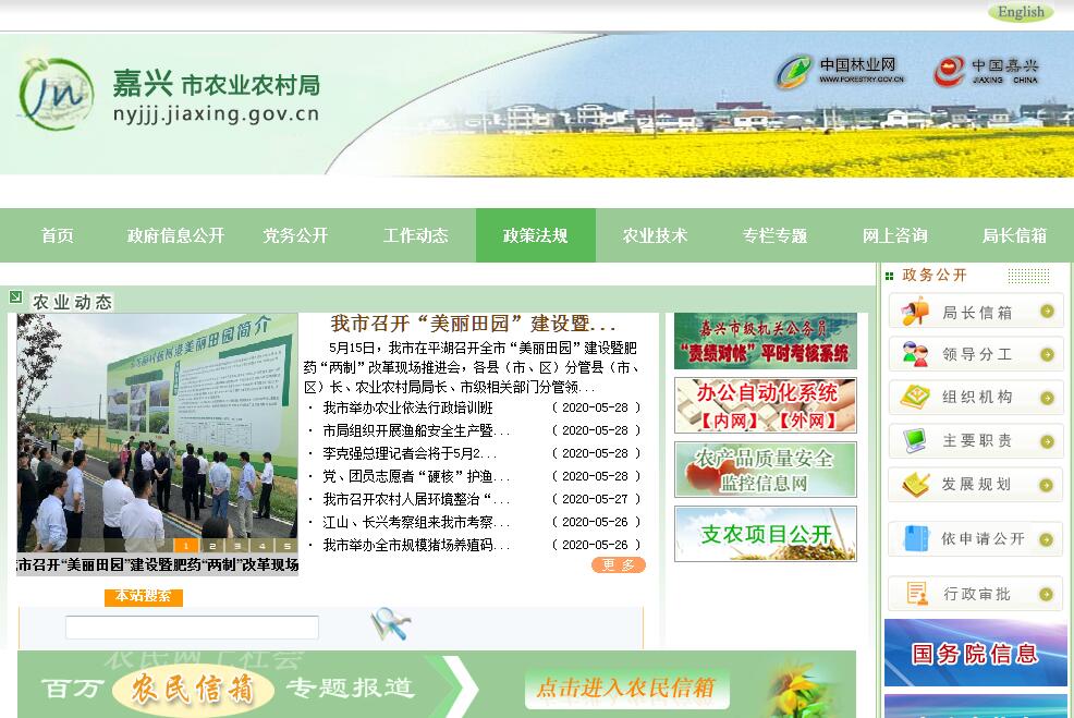 嘉兴市农业农村局贯彻落实党中央和省委、市委关于“三农”工作的方针政策和决策部署,在履行职责过程中坚持和加强党对“三农”工作的集中统一领导。其主要职责是:(一)研究制订和组织实施全市“三农”工作的中长期规划、重大政策。指导农业综合行政执法。参与涉农的财税、价格、收储、金融保险等政策制定。(二)统筹推动发展全市农村社会事业、农村公共服务、农村文化、农村基础设施和乡村治理。组织实施“千村示范、万村整治”工程,牵头组织改善农村人居环境。指导农村精神文明和优秀农耕文化建设。(三)拟订深化农村经济体制改革和巩固完善农村基本经营制度的政策及配套措施。负责农民承包地、农村宅基地改革和管理有关工作。负责农村集体产权制度改革,指导农村集体经济组织发展和集体资产管理工作。指导农民合作经济组织、农业社会化服务体系、新型农业经营主体建设与发展。指导国有农场建设管理工作。(四)负责高效生态农业产业体系建设。指导乡村特色产业、农产品加工业、休闲农业和农家乐发展工作。提出促进大宗农产品流通的建议,培育、保护农业品牌,指导农产品营销管理工作和农业展示展销活动。发布农业农村经济信息,监测分析农业农村经济运行。承担农业统计和农业农村信息化有关工作。(五)负责种植业、畜牧业、渔业、农业机械化等农业各产业的监督管理。依法开展农业行政许可及其监督管理。指导粮食等农产品生产。组织开展畜牧生产、饲料兽药、畜禽屠宰以及畜牧兽医从业人员的监督管理。负责渔场修复振兴和渔政渔港监督管理。指导农业行业安全生产工作,负责农业机械、农药使用和渔业安全生产监督管理,负责农家乐安全管理工作,指导休闲观光农业安全管理工作。配合做好农业领域生态环境保护和农业生态环境污染的调查处理工作。(六)负责农产品质量安全监督管理。组织开展农产品质量安全监测、追溯。指导农业标准化生产、农业检验检测体系建设和农产品禁止生产区域划定等。(七)负责农业资源管理。指导农用地、渔业水域以及农业生物物种资源的保护与管理,负责水生野生动植物、耕地及永久基本农田质量保护工作。指导农产品产地环境管理和农业清洁生产。指导设施农业、生态循环农业、节水农业发展以及农村可再生能源综合开发利用、农业生物质产业发展。牵头管理外来物种。(八)负责有关农业生产资料和农业投入品的监督管理。组织农业生产资料市场体系建设,参与有关农业生产资料地方标准的制订和监督实施。(九)负责农业防灾减灾、农作物重大病虫害监测防治工作。指导动植物防疫检疫体系建设,组织、监督动植物防疫检疫工作,监测动植物疫情疫病,依法发布疫情并组织扑灭。(十)负责农业投资管理。提出农业投资项目建设规划建议,按权限审批农业投资项目,负责农业投资项目资金安排和监督管理。(十一)推动农业科技体制改革和农业技术推广队伍体系建设。指导农业产业技术体系和农技推广体系建设,组织开展农业领域应用技术研究、科技成果转化和技术推广。负责农业转基因生物安全监督管理和农业植物新品种保护,按分工负责农业野生植物保护工作。(十二)指导农业农村人才工作。拟订农业农村人才队伍建设规划并组织实施,指导农业教育和农业职业技能开发,组织新型职业农民培育、农业科技人才培养和农村实用人才培训工作。(十三)组织开展农业对外合作工作。承办有关农业涉外事务,组织开展农业贸易促进和有关国际交流合作,参与有关农业对外援助项目。(十四)拟订扶贫开发工作规划和政策并组织实施,协调督促农村扶贫开发工作。完成上级扶贫机构交办的有关工作。会同有关部门衔接重点帮扶工作。(十五)完成市委、市政府交办的其他任务。