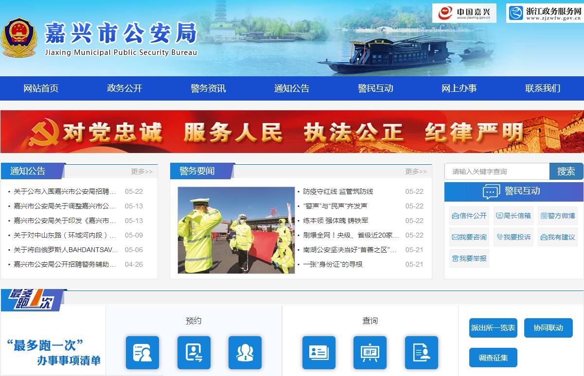 嘉兴市公安局是主管公安工作的市政府组成部门。其主要职责是:1、贯彻执行党和国家有关公安工作的方针、政策、法律、法规和市委、市政府、省公安厅的指示,研究起草有关公安行政管理的规范性文件,经审议通过后组织实施,部署、指导、监督、检查全市公安工作。2、主管和指导全市公安侦查工作,组织特别重大案件和跨县(市、区)重大案件的侦破工作。3、负责指导全市公安机关对国家机关、社会团体、企事业单位和重点工程的治安保卫工作以及群众性治安保卫组织的治安防范工作。4、指导、监督全市公安机关依法查处危害社会治安秩序行为,依法管理特种行业,组织、协调对重、特大治安事件和突发性事件的处置工作,管理集会、游行、示威活动。5、依法管理、指导本市境内中国公民出入境和外国人在本市境内居留、旅行的有关管理工作。6、指导、监督全市公安机关维护道路交通安全、交通秩序以及机动车辆、驾驶员的管理工作,负责管辖道路的交通管理工作。7、指导、监督全市公安机关对公共信息网络的安全监察,组织实施网络监控工作。8、指导、监督全市公安机关依法承担的执行刑罚和对看守所、治安拘留所、强制戒毒所等的管理工作,管理市看守所和强制戒毒所。9、负责指导、监督劳动教养审批工作。10、组织、指导禁毒缉毒工作,承担市禁毒工作领导小组办公室的日常工作。11、组织实施公安科学技术工作;规划公安信息技术、刑事技术和行动技术建设,负责全市技术防范工作和社会公共安全产品的管理。12、指导、管理全市公安机关装备、被装和经费等警务保障工作。13、制定公安队伍监督管理规章制度,分析队伍状况,组织、指导公安机关督察工作;按规定权限实施对干部的监督;查处或督办公安队伍重大违纪案件。14、负责指导、监督消防工作。按规定权限,对武警部队执行公安任务实施领导和指导。15、协同县(市、区)党委管理县级公安机关领导干部,规划和指导全市公安机关队伍建设,指导全市公安机关执法活动。16、承办市委、市政府和上级公安机关交办的其他事项。