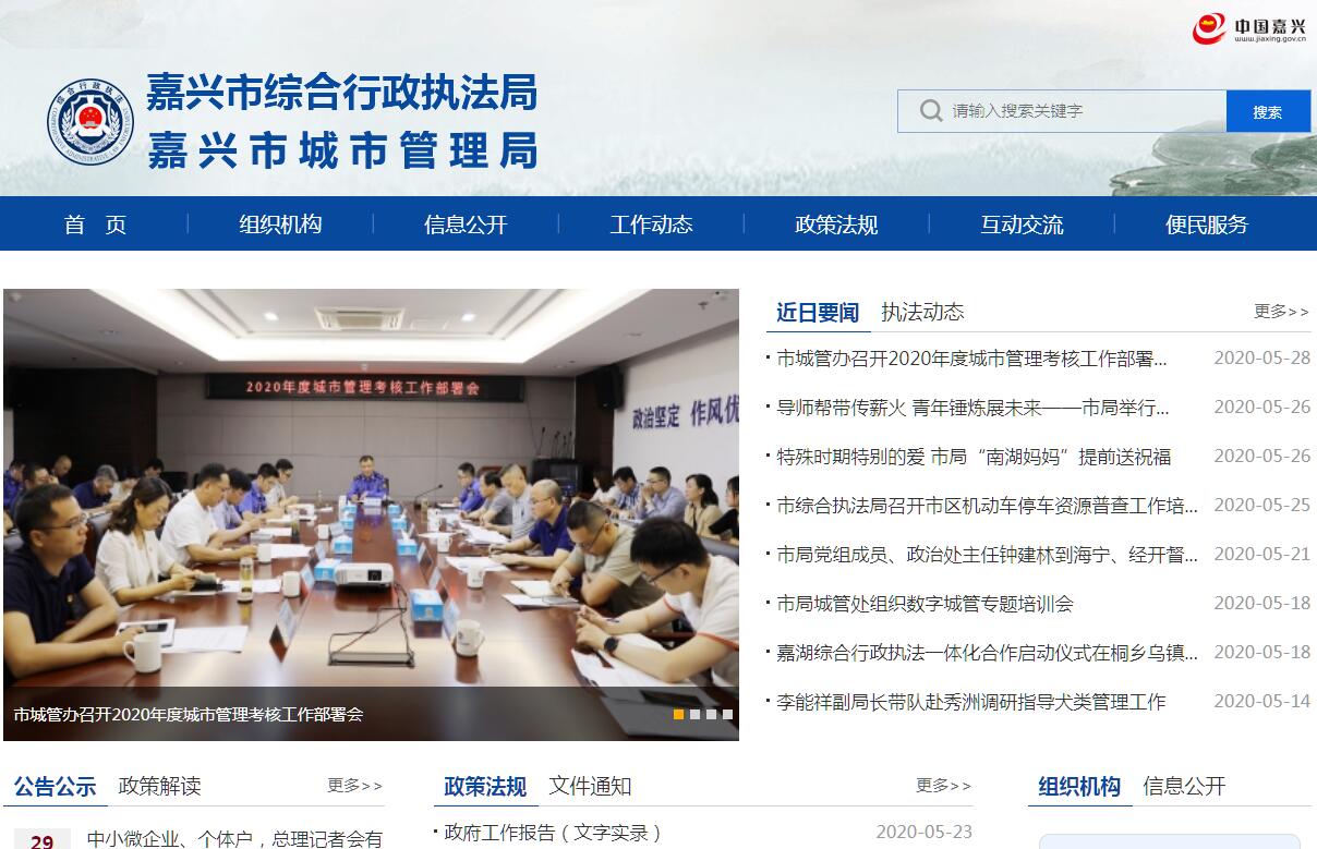 嘉兴市综合行政执法局贯彻落实党中央和省委、市委关于深化行政执法体制改革、推进综合行政执法和改进城市管理工作的方针政策和决策部署,在履行职责过程中坚持和加强党对综合行政执法和城市管理工作的集中统一领导。其主要职责是:(一)贯彻执行国家和省、市关于综合行政执法和城市管理工作的法律、法规、规章。起草城市管理相关地方性法规规章草案,组织拟订综合行政执法和城市管理工作的相关规范性文件,并组织实施。(二)牵头拟订全市综合行政执法和城市管理相关的中长期规划、专项规划、工作计划并组织实施。组织制订全市综合行政执法和城市管理相关的标准、规范并监督实施。研究提出完善综合行政执法和城市管理体制、调整优化综合行政执法事项和城市管理行使范围、权限的建议。(三)负责对全市综合行政执法和城市管理工作的业务指导、组织协调、监督检查和考核评价。研究制订全市综合行政执法工作的规章制度、管理目标、考核标准和城市管理工作的标准体系、责任体系、考核体系,并组织实施相关的督查、考核。(四)负责指导全市综合行政执法部门行使确定集中行使综合执法领域方面法律、法规、规章、规定的全部或部分行政处罚权及相关行政监督检查、行政强制职权。(五)组织开展全市性重大综合行政执法活动和专项执法行动。按权限查处跨区域案件和重大案件,协调和监督综合行政执法范围内的重大案件处置和跨区域执法工作。根据工作需要行使行政执法范围内的行政处罚权及相关行政监督检查、行政强制职权。(六)负责全市综合行政执法工作的统筹协调和指导监督。研究提出深化和完善全市综合行政执法改革方案并督促落实。协调综合行政执法部门与业务主管部门的执法协作工作。承担市场监管、生态环境保护、文化市场、交通运输、农业等领域间和领域外相关部门间的执法协调。完善综合行政执法与司法的衔接机制。(七)负责推进全市综合行政执法规范化建设。制定并实施综合行政执法队伍规范化建设标准,指导综合行政执法队伍建设和管理。统筹推进全市综合行政执法系统信息化建设。(八)负责城市管理工作的综合协调和监督管理。负责市政公用设施运行、城市市容和城市照明以及与城市管理密切相关的公共空间秩序、违法建设、环境保护、交通秩序等方面相关工作的综合协调和监督管理。(九)负责市区城市管理工作的统筹协调和综合管理。负责市区城市管理相关问题的发现收集、信息处理和工作流程的运转,协调、督办和落实城市管理重大、疑难问题。指导推进城市管理重心下移和基层城市管理能力建设。指导全市城市管理信息共享平台规划、建设和维护管理工作。(十)负责市城市管理委员会办公室的日常工作。(十一)负责受理综合行政执法和城市管理中的举报投诉。(十二)完成市委、市政府交办的其他任务。