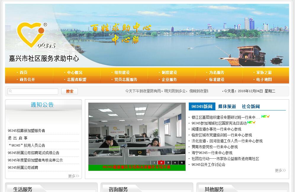 嘉兴市96345社区服务求助中心是2003年南湖区政府实事工程,由南湖区人民政府主办,市民政局、秀洲区人民政府和经济技术开发区联办,于2003年9月6日起正式运行。中心以求助电话96345、网址www.jx96345.cn、短信、微信、APP服务端为载体,依托460家加盟企业、210名社区一技之长服务者和一万多名党员志愿者队伍,构建起一个覆盖整个市区的信息平台,24小时全天候受理市民生活类、咨询类、事务类、电子商务类、企业服务类五大类120多项服务。2004年6月,经国家发改委批复,南湖区社区服务中心二期工程列入国家首批社区服务国债试点项目,总投资—1955万元。通过项目建设,全面提高了“96345”硬件设施和技术水平。全区实现了区、街道、社区三级联网,建造了965平方米的96345社区服务求助中心信息大楼,投资300多万元,建起了中心机房,建立了“96345”门户网站和呼叫中心。2018年7月2日96345中心全面入驻嘉兴市党群服务中心,迁址到南湖区湘城社区文化广场北侧(宜城路26号)。中心从一开始就非常注重发挥党员志愿者的先锋模范作用,在上级组织部门的指导下,于2004年9月12日,中心成立了党员志愿者服务总站,下设27个分站和65个党员志愿者服务点,按照志愿者的特长,组建了卫生医疗、水电安装、居家养老等30多支特色服务分队,开展热线求助上门服务;上街下乡集中服务;邻里结对经常服务;基地挂牌式服务。并把每年6月的最后一个星期日定为“党员奉献日”,把每月最后一个周六定为党员志愿服务日,集结各个分站,组织各类志愿者,在街头、社区、乡村等开展内容丰富、形式多样的公益性活动。为了帮助一些困难党员家庭解决生活中的实际困难,总站向197户困难党员家庭发放了“服务优惠卡”。持“优惠卡”的党员可以通过拨打“96345”享受党员志愿者提供的无偿服务,对于服务内容超出党员志愿者服务能力的,总站派出加盟者提供相应的服务我们的努力得到了上级领导的关注。2011年12月22日,“浙江骄傲”2011年度最具影响力人物颁奖典礼上,96345党员志愿者(集体)荣获“年度提名奖”。2010年8月31日,时任中央书记处书记、中组部部长李源潮在中央第241期《深入开展创先争优活动简报》上对南湖区开展党员志愿服务活动作出了重要批示:浙江嘉兴在创先争优活动中广泛开展党员志愿服务活动很好。请创先办总结推广。我们将进一步贯彻中央领导同志批示精神,再接再厉把南湖区的党员志愿服务工作做得更好,为嘉兴市把党的诞生地打造成党建高地贡献力量!2014年,中国志愿服务联合会会长刘淇、时任浙江省委常委、组织部长胡和平和历任组织部长都对嘉兴市的党员志愿服务工作予以了高度肯定并作出重要批示。中心先后与市委老干部局、南湖区委组织部、妇联、计卫局、区工会、团区委等政府职能部门联手开设了“老干部热线”、“困难党员热线”、“妇女维权热线”、“社区责任医生呼叫热线”、“区职工维权帮扶热线”、“青少年心理辅导热线”等服务。南湖区经贸局也依托“96345”平台,成立了区生产力服务中心,为企业提供培训、融资等系列服务,解决企业的后顾之忧。在2008年中秋之际,中心与《南湖晚报》联合开通“征婚热线”,为需要帮助牵线的人员提供服务,中心作为嘉兴市政府居家养老的实事工程平台,政府为孤寡及空巢老人免费安装了一键通应急呼叫系统,老人只需按一个键就可直接连通“96345”,方便老年人紧急求助。2012年9月,由市文明委牵头,成立了嘉兴市96345志愿者联盟,下设21个志愿者总站。2015年开通智慧养老服务平台并荣获了“2015年度南湖区区长质量奖”。2016年实现全省互联互通。2017年平台开通了健康服务专线和法律服务专线,2017年11月承接了南湖区“非法金融集资”举报业务,2018年3月承接了全市电梯应急救援协作平台,2018年7月承接了市残联为全市残疾人服务的电动爬楼机服务创新试点项目,2018年8月承接受理南湖区的“基层治理综合信息”举报业务。十五年来,中心已累计受理市民电话和网上求助388万多件次,回访满意率99.95%,办结率100%,中心在2008年4月通过质量管理体系认证,并于2009年12月获得浙江省“社区服务名牌”称号。2017年4月,96345国家级服务业试点项目顺利通过专家组验收。中心秉承“以人为本、情系百姓、有求必应、诚信为民”的服务宗旨,不断完善服务内容,提升服务质量,拓展品牌内涵,提高了在禾城市民心目中的知名度和信誉度,使政府赢得了口碑,增加了就业岗位,开辟了税收渠道;企业赢得了市场,拓展了业务,增加了效益;市民赢得了实惠,减少了风险,得到了便利。中心先后荣获“全国五一劳动奖状”、“全国先进基层党组织”、“全国工人先锋号”、“全国巾帼文明岗”、“全国三八红旗集体”、 “全国青年文明号”、“全国五四红旗团支部”、“全国民政系统群众满意窗口和行风建设示范单位”、“全国家庭服务行业先进单位”、“全国家庭服务行业知名品牌单位”、全国“百家诚信兴业,诚信服务单位”、2015年度全国一百个“最佳志愿服务组织”、“浙江省服务名牌”、“浙江省文明单位”等百项荣誉。“96345”热线实绩得到中央和省、市媒体的关注,新华社、《人民日报》、中央电视台、中央人民广播电台等先后予以专题报道。国务院研究室农林司,国家发展改革委员会等有关领导,国务