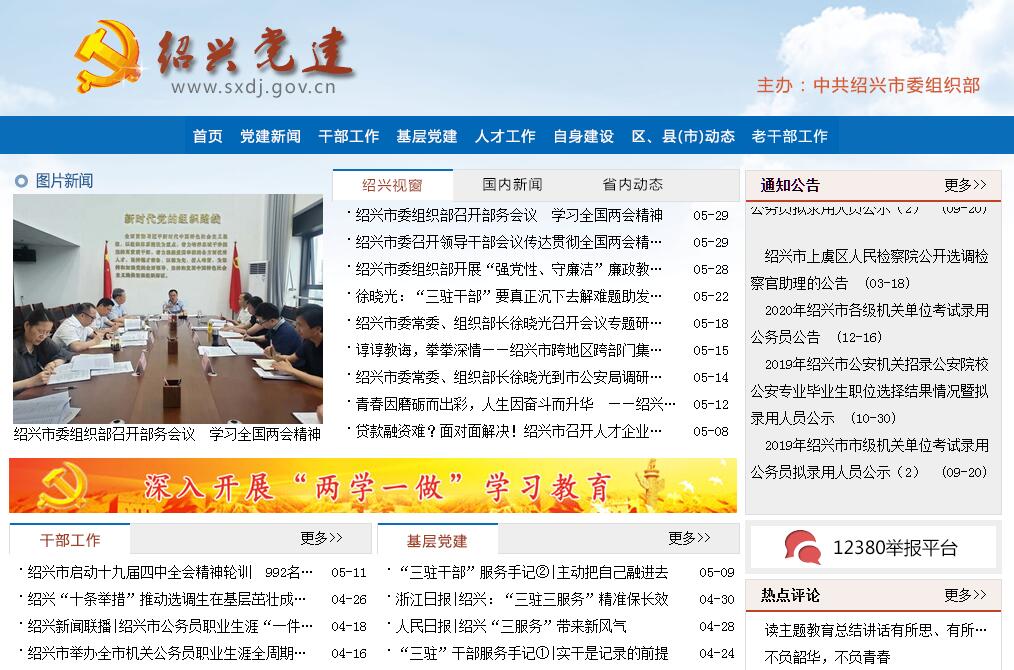 绍兴党建网由中共绍兴市委组织部主办。中共绍兴市委组织部主要职责:(一)研究、指导党组织建设特别是党的基层组织建设,探索各类新经济组织和新社会组织中党组织的设置形式和活动方式;负责党员的管理和发展工作,协同市委宣传部协调、规划和指导党员的教育工作;承担市委非公有制企业党建工作联席会议办公室的职能。(二)贯彻中央制定的领导班子和干部队伍建设的方针政策,对全市干部工作、干部队伍建设进行宏观管理和指导;提出县(市、区)和市直机关以及其他列入市委管理的领导班子调整、配备的意见和建议;负责市委管理领导干部的考察、考核、日常教育管理工作及办理任免、工资、待遇、退离休审批手续;办理我市省委管理干部的任免、工资、待遇、离退休的报批手续;负责市委组织部管理干部的考察、考核及日常教育管理、办理任免手续;指导领导班子的思想政治建设和作风建设;负责中青年干部的培养、选拔工作;负责指导、协调我市承担的为西藏、新疆及西部其他地区培养、选派干部的工作。(三)组织开展新时期党建工作新情况、新问题的调查研究,提出加强党的思想、组织、作风和制度建设的意见及建议;承担市委党建工作领导小组办公室的职能,党建工作的调研职能。(四)研究、指导党的组织制度和干部人事制度的改革,制定或参与制定我市组织、干部人事工作的重要政策。(五)负责全市组织工作和干部工作的检查督促,及时向市委和上级组织部门反映重要情况,提出建议。(六)主管全市干部教育工作,研究制订我市干部教育的政策和规划;指导、协调县(市、区)及市直机关的干部培训工作;组织市管干部、中青年干部和各级组织人事部门负责人的培训;协同市委宣传部做好县(市、区)及市直机关部门党委中心组学习和领导干部在职自学的指导和考核。(七)负责全市党的机关,人大常委会、政协、群众团体和民主党派机关参照《国家公务员法》进行管理和法院、检察院机关按《法官法》、《检察官法》进行管理的宏观指导和协调工作。(八)负责市委管理的企业领导干部的考察、考核、选拔工作,办理有关推荐、任免手续;牵头制定和实施社会主义企业经营管理者队伍建设规划;调查了解和掌握全市国有企业领导班子建设情况,指导和协调有关部门加强全市企业经营管理者队伍建设;掌握和联系一批优秀企业经营管理人才,加强宣传、教育和培养。(九)承担市委人才工作领导小组办公室职能;负责牵头制定和实施人才发展战略和规划、人才工作重大政策;牵头组织开展县(市、区)党政领导科技进步和人才工作目标责任制考核工作;做好省、市两级高级专家、专业团队的推荐评选工作;牵头抓好全市高级专家、领军人才、拔尖人才等高层次人才的管理服务工作。(十)负责离退休干部的宏观管理工作,指导研究和制定或参与制定有关退离休干部工作的政策,对退离休干部的政治、生活待遇落实情况进行督促检查。(十一)负责全市干部监督工作的综合、协调和指导,研究和制定干部监督的制度及规定,对干部选拔任用工作和领导干部进行监督。(十二)负责全市干部统计、党员统计和干部信息的汇总呈报工作;负责管理市委管理干部及市直机关行政编制干部的档案,对全市干部档案工作进行业务指导。(十三)负责全市因公出国(境)人员审查工作的政策指导和情况综合,承办市管干部和市直因公出国(境)人员及党员因私出国(境)保留党籍的审批工作。(十四)受理有关干部工作、组织工作等方面的来信来访和人大代表、政协委员的建议、提案。(十五)归口管理市委老干部局。完成市委和上级组织部门交办的其他工作任务。