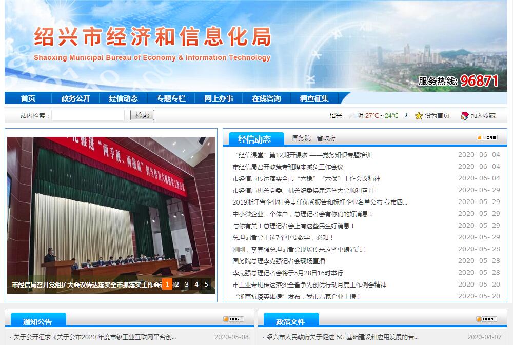 绍兴市经济和信息化局(绍兴市中小企业局)主要职责:(一)组织起草经济和信息化相关规范性文件。拟订并组织实施工业和信息化领域的行业规划、计划、产业政策,提出优化产业布局、结构的政策建议。(二)监测分析全市经济运行态势,组织拟订并实施近期经济运行调控目标、政策措施,协调解决经济运行中的重大问题。(三)贯彻实施新型工业化发展战略,组织拟订并实施工业经济发展规划,推进产业结构战略性调整和优化升级,改造提升传统制造业,培育发展新兴产业。推进信息化和工业化、制造业和生产性服务业融合发展。推进工业园区、产业基地、小微企业园等平台建设。(四)负责全市工业和信息产业投资管理工作,牵头推进重大工业项目实施。推进智能制造。牵头提出工业和信息化发展、中小企业发展财政专项资金使用的重点领域和方向。(五)指导推进工业和信息化领域技术创新,推进产业创新体系和能力建设。组织实施重大技术装备攻关。推动企业技术引进、新产品开发和高新技术产业化。指导协调有关产学研合作和人才队伍建设。开展工业和信息化领域的合作与交流。推进工业和信息化领域军民融合。负责国防科技工业的综合协调和管理,推动军工经济与地方经济融合,推进军民结合产业发展。(六)牵头推进绿色制造工程。组织拟订并实施清洁生产促进政策。拟订并组织实施工业和信息化领域能源节约和资源综合利用政策,指导工业节能。组织协调相关重大示范工程和新产品、新技术、新设备、新材料的推广应用。(七)组织拟订并实施服务型制造、工业和信息化领域生产性服务业发展政策,指导推进生产性服务业功能区和公共服务平台建设,推动工业设计产业发展。(八)统筹推进数字经济发展,组织拟订并实施数字经济发展规划。推进信息产业发展和结构调整,负责云计算、大数据、物联网、人工智能等产业培育发展和推广应用,扩大和升级信息消费。指导推进工业互联网发展和产业数字化转型,协调推进信息技术公共服务平台建设。(九)组织推进全市信息化工作。协调推进社会信息化、智慧城市建设。协调重大信息基础设施建设,组织推进通信网、广播电视网、计算机网等“多网”融合发展。指导推进重点工业领域工业控制系统信息安全保障工作。(十)负责工业和信息化行业管理。推进装备工业、消费品工业和材料工业发展。推动重大装备国产化,培育和发展高端装备制造、现代医药、电子信息、新材料等产业。指导推进纺织、化工、金属加工、珍珠等传统优势产业改造提升。传承发展黄酒等历史经典产业。(十一)培育发展大企业大集团、行业龙头企业。牵头推进企业减负降本,组织协调服务企业的重大活动。指导现代企业制度建设,推动企业完善治理结构和创新管理。(十二)负责促进中小企业和民营经济发展的指导和综合协调,组织拟订相关政策措施。负责中小企业公共服务平台和社会化服务体系建设。指导小微企业创业创新、融资和信用担保等服务。开展中小企业梯度培育。(十三)完成市委、市政府交办的其他任务。
