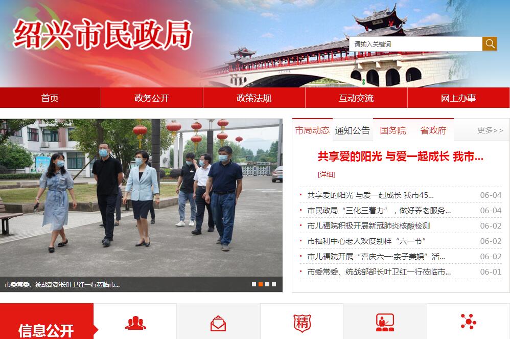 绍兴市民政局贯彻落实党中央、省委和市委关于民政工作的方针政策和决策部署,在履行职责过程中坚持和加强党对民政工作的集中统一领导。其主要职责是:(一)贯彻执行民政工作的法律、法规、规章。研究起草有关民政的规范性文件,制定全市民政事业的发展规划、政策和计划,并组织实施。(二)负责全市社会团体、基金会和民办非企业单位的登记、监督管理和执法监察工作。负责市级社会组织评估工作。拟订慈善事业发展规划、政策,主管慈善工作。(三)牵头拟订全市社会救助规划、政策和标准。统筹社会救助体系建设,指导和监督全市实施特困人员供养、城乡居民最低生活保障、临时救助、生活无着人员救助工作。指导社会救助家庭经济状况核对工作。承担全市革命老区建设相关工作。(四)指导城乡基层政权和基层群众自治组织建设工作。指导社区服务管理和村务公开民主管理工作,推进城乡社区建设,组织开展城市基层治理相关工作。(五)负责行政区划管理。规范全市地名标志的设置和管理,负责全市标准地名资料的编辑和审定。负责行政区域界线的勘定和日常管理工作,调处行政区域边界争议。(六)拟订全市养老服务和社会福利事业发展规划、政策和标准。指导全市养老服务体系建设,参与推动养老服务业发展。指导和管理城乡养老机构建设,指导居家养老服务工作。指导老年人、孤儿、残疾人等特殊困难群体的权益保障工作。负责收养登记工作。(七)负责殡葬管理和婚姻登记管理工作。负责城市生活无着的流浪乞讨人员的救助工作。(八)拟订全市社会工作发展规划、政策和职业规范,会同有关部门推进社会工作人才队伍建设和相关志愿者队伍建设。(九)负责市级福利公益金的管理工作。(十)负责民政事业计划财务和统计工作,指导、监督民政事业费的使用管理。(十一)负责全市大中型水库移民安置和后期扶持工作,指导小型水库移民扶持工作。(十二)完成市委、市政府交办的其他任务。
