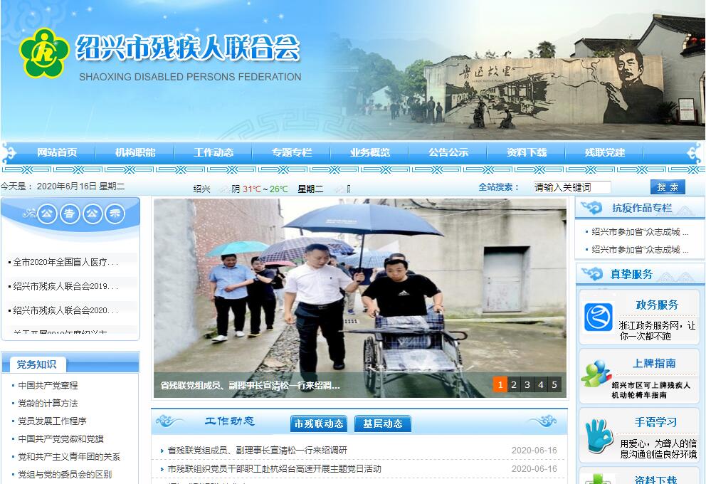 绍兴市残疾人联合会是全市残疾人代表组织和主管残疾人工作的事业团体,业务上接受市政府有关部门对口指导,与县(市、区)残联机构建立业务关系。其主要职责是:(一)宣传、贯彻、执行《中华人民共和国残疾人保障法》及党和国家有关残疾人工作的方针、政策;协助政府研究制定我市残疾人事业发展的中、长期规划和有关政策;配合有关部门起草有关残疾人事业的地方性法规草案;承担相关领域的业务指导和行业管理工作。(二)弘扬人道主义,宣传残疾人事业,沟通政府、社会与残疾人之间的关系,动员社会理解、尊重、关心、帮助残疾人。(三)听取残疾人意见,反映残疾人需求,维护残疾人权益,为残疾人服务。(四)开展残疾人康复、教育、就业、职业培训、扶贫、文化、体育、用品用具供应、社会福利、社会保障、无障碍设施建设、残疾预防等工作,创造良好的环境和条件,扶助残疾人平等参与社会生活。(五)承担市政府残疾人工作协调委员会的日常工作,做好综合协调、组织实施和督办落实。(六)指导各县(市、区)残联组织建设和业务建设,协助各县(市、区)管理残联领导干部,完善、健全社区残疾人工作体系和业务体系,开展对基层残联干部培训工作。(七)指导和管理各类残疾人社团组织。(八)开展残疾人事业的对外交流与合作。(九)管理和指导发放《中华人民共和国残疾人证》。(十)承担市委、市政府及省残联交办的其他工作。