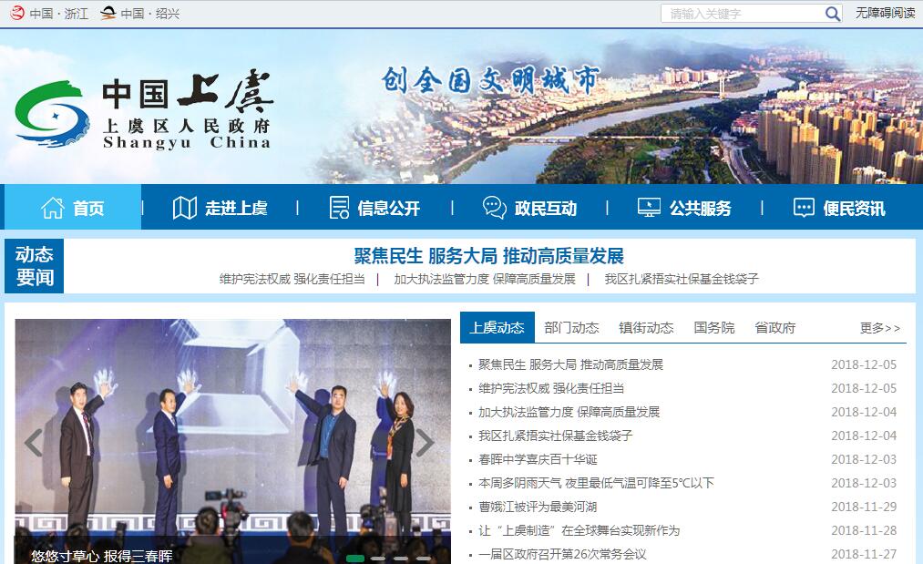 上虞地处钱塘江南岸,总面积1402平方公里,钱塘江岸线16公里。总人口77.94万,下辖15个乡镇、6个街道办事处,整个地貌呈“五山一水四分田”的格局。上虞之名,得于虞舜。据《太康地记》:“舜避丹朱于此,故以名县。百官从之,故县北有百官桥。亦云舜与诸侯会事迄,因相娱乐,故曰上娱(娱通虞)。”秦王政二十五年(公元前222年)设县,隶属会稽郡。1992年上虞撤县设市。上虞历史悠久、人文荟萃。早在距今3000多年的甲骨文中,就已经有了“上虞”的文字记载,距今已有2200多年的建县历史,是浙江省建县最早的县份之一,是全球最早的青瓷发源地之一,也是经典爱情故事梁祝传说中女主人公祝英台的家乡。在历史上,形成了“舜会百官”、“东山雅聚”、“白马春晖”等三次名人大聚会,涌现出了被誉为“中国古代唯物主义者和启蒙思想家”的王充、“东山再起”典故的谢安、中国山水诗开创者谢灵运、国学大师马一浮、气象学家竺可桢、“茶圣”吴觉农、电影名导谢晋等著名乡贤。上虞区位突出、优势明显。自古就有九县通衢之称,目前境内国道、高速、铁路、运河一应俱全,特别是嘉绍跨江通道、杭甬高速铁路建成通车后,将大大拉近与周边大城市的时空距离,与上海、杭州、宁波加速形成“同城效应”;此外,已经建成通航的杭甬运河和规划建设的杭州湾南岸唯一出海口——新上虞港,将进一步凸显上虞的区位优势。上虞生态优美、环境宜居。境内有江有海,山清水秀,景色怡人,拥有着英台故里祝家庄、凤凰山麓大舜庙、“江南第一”曹娥庙、白马湖畔春晖园等一大批人文自然景观,是国家园林城市和“省生态旅游城市”,荣获“中国人居环境范例奖”、“中国最佳休闲小城”、浙江省示范文明城市等称号。上虞中心城区依大龙山而建,临母亲河“曹娥江”而居,清新婉约;城北新区高楼林立,商业繁荣,气象一新;滨海新城、滨江新城、高铁新城、大龙山区域建设加快推进,城市功能更加齐全、配套日趋完善,曾连续三年被评为内地最佳商业城市县级市之首,是一个宜居、宜购、宜创的新兴城市。上虞产业优质、经济繁荣。拥有2个省级开发区和14个乡镇工业功能区,形成了机械装备、精细化工、轻工纺织、照明电器、新能源新材料等五大主导产业,以及伞件、铜管、手套袜业等八大块状经济,拥有销售超亿元企业176余家,上市企业13家,上市企业家数居全省前列。建筑产业优势明显,是著名的“建筑之乡”;商贸旅游业蓬勃发展,“浙东新商都”的城市品牌和“四季仙果之旅”的旅游品牌日益打响。2015年地区生产总值达到725.94亿元,是“十一五”末的1.66倍,年均增长9.2%。财政总收入达到97.5亿元,其中一般公共预算收入53.58亿元,分别是“十一五”末的1.8倍和1.84倍,年均均增长11.8%。上虞民生进步、社会和谐。社保体系逐步完善,五大保险扩面提标,新农合标准大幅提升,社会救助力度加大。新农村建设加快推进,城乡面貌不断改善。精神文明建设成效显著,是省级文明城市,全国科普示范县市,“中国孝德文化之乡”,被命名为浙江省文化名城。“平安上虞”建设扎实推进,市民的幸福指数、安全指数不断提升。
