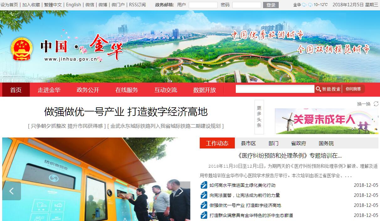 金华,浙江省地级市;自秦王政二十五年(公元前222)建县,已有2200多年的历史,因其“地处金星与婺女两星争华之处”得名金华,简称金,古称婺州。地理位于浙江省中部,坐标东经119°14′-120°46′30”,北纬28°32′-29°41′,境辖设婺城区、金东区2个市辖区,兰溪市、义乌市、东阳市、永康市4县级市以及武义县、浦江县、磐安县3县,总面积10941.42平方千米。2011年金华-义乌都市区被确定为浙江省的第四个大都市区,规划2020年成为200万人以上特大城市。金华文化属吴越文化,金华人属江浙民系,使用吴语。在福布斯公布的2012年中国大陆最佳商业城市排行榜中,金华位居全国第33位,并且入围大陆创新能力最强25个城市之一。2013年1月29日,中华人民共和国住建部列金华市为第一批智慧城市试点。同时,金华还是国家级历史文化名城、中国十佳宜居城市之一、G60科创走廊中心城市。2016年,金华市实现生产总值(GDP)3635.01亿元。2018年4月2日,科技部、国家发展改革委发布支持新一批城市开展创新型城市建设的名单,全国17座城市入选,金华名列其中。2017年中国地级市全面小康指数排名第29。2018年11月,入选中国城市全面小康指数前100名。