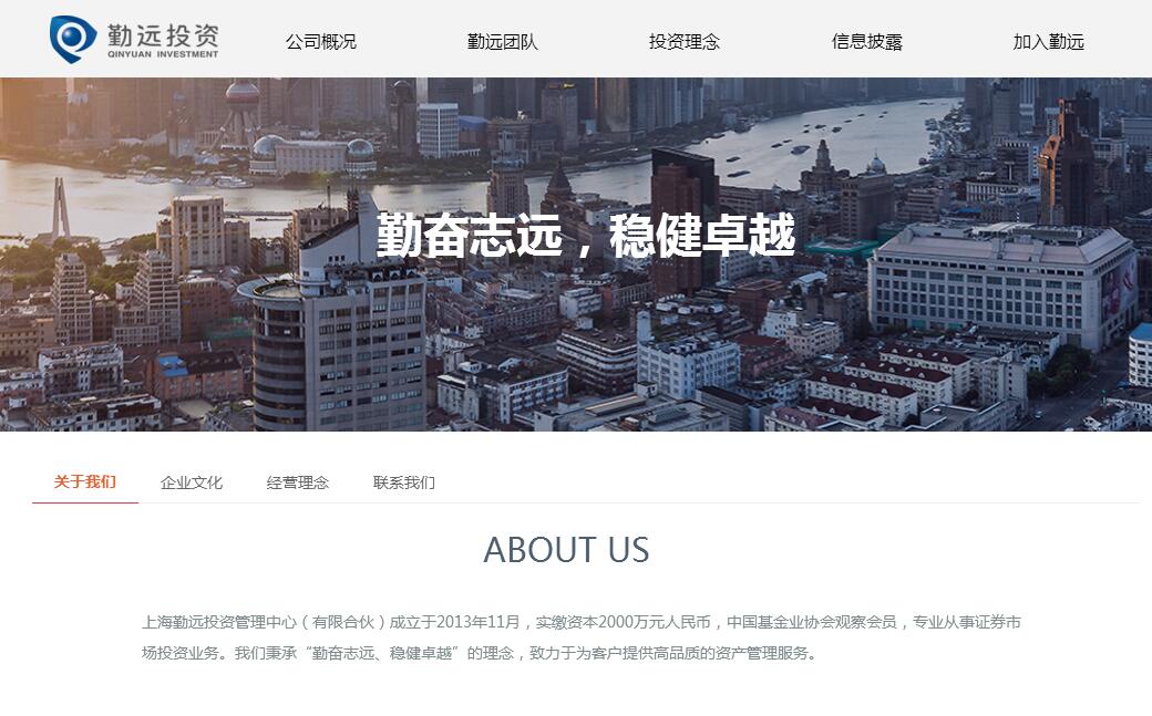 | 网站简介: 上海勤远投资管理中心(有限合伙)成立于2013年11月,实缴资本2000万元人民币,中国基金业协会观察会员,专业从事证券市场投资业务。管理团队成员均具备丰富的从业经验,历经国内外证券市场的跌宕起伏。我们秉承“勤奋志远、稳健卓越”的理念,打造“多策略、全方位”的一体化投资平台,致力于为客户提供高品质的资产管理服务。 |