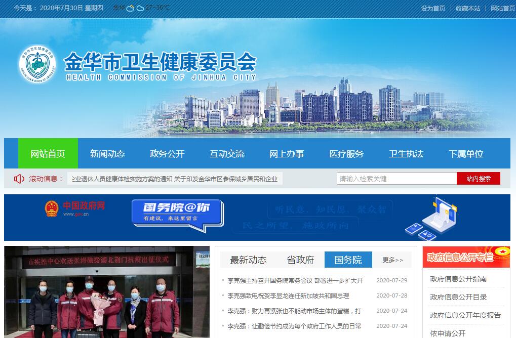 金华市卫生健康委员会主要职责:(一)组织拟订并实施全市卫生健康事业发展总体规划,统筹规划卫生健康资源配置,指导县(市、区)卫生健康规划的编制和实施。制定并组织实施卫生健康基本公共服务均等化、普惠化、便捷化和公共资源向基层延伸等政策措施。(二)协调推进全市医药卫生体制改革,研究提出深化医药卫生体制改革政策、措施的建议。加强公立医院党的建设,组织深化公立医院综合改革,推进管办分离,健全现代医院管理制度,制定并组织实施推动卫生健康公共服务提供主体多元化、提供方式多样化的政策措施,提出医疗服务和药品价格政策的建议。会同有关部门制定并实施健康服务业发展的政策措施。(三)指导和规范卫生健康行政执法工作,开展法制宣教,规范执法行为,监督检查法律法规和政策措施的落实,组织查处重大违法行为。依法负责职责范围内的职业卫生、医疗卫生、放射卫生、环境卫生、学校卫生、精神卫生、公共场所卫生、饮用水卫生和传染病防控等公共卫生的监督管理,健全卫生健康综合监督体系。承担《烟草控制框架公约》履约的全市牵头工作。(四)负责医疗机构、医疗服务行业管理。指导和监督医疗机构医疗服务、技术、医疗质量和采供血机构的管理。会同有关部门组织实施卫生健康专业技术人员资格标准。制定并组织实施医疗服务规范、标准和卫生健康专业技术人员执业规则、服务规范。建立医疗机构医疗服务评价和监督体系。负责卫生健康行业安全生产监督管理工作。(五)组织制定中医药、民族医药发展规划,并纳入卫生健康事业发展总体规划,负责中医药的继承、创新和中西医结合工作,统筹协调中西医发展。(六)组织实施国家基本药物政策和国家基本药物制度,开展药品使用监测、临床综合评价和短缺药品预警,提出我市基本药物价格政策的建议。开展食品安全风险监测,组织指导食品安全企业标准备案工作。(七)制定并组织落实疾病预防控制规划、免疫规划和严重危害人民健康公共卫生问题的干预措施。制定完善卫生应急预案和政策措施,负责突发公共卫生事件监测预警和风险评估,组织和指导实施各类突发公共卫生事件的预防控制、医疗救援与卫生应急处置,发布各类突发公共卫生事件应急处置信息。(八)组织拟订并实施基层卫生发展规划,指导基层卫生服务体系建设。指导和监督基层贯彻落实卫生政策,完善基层运行新机制,落实乡村医生管理制度。指导基层卫生健康工作,指导基层医疗卫生和全科医生队伍建设。(九)组织拟订并实施全市妇幼健康服务发展规划和政策措施,指导妇幼健康服务体系建设,负责妇幼保健机构的业务指导和综合监管,推进妇幼健康服务均等化。承担全市病残儿医学鉴定管理工作。(十)负责计划生育管理和服务工作,开展人口监测预警,研究提出人口与家庭发展相关政策建议,完善计划生育配套政策。(十一)组织拟订并协调落实应对人口老龄化政策措施,负责推进老年健康服务体系建设和医养结合工作。(十二)组织拟订并实施卫生健康科技发展规划,组织、指导医药卫生健康科研项目、科技成果及成果转化和推广的申报、管理与验收。参与拟订继续医学教育发展规划,组织开展相关业务培训工作。(十三)负责市保健委员会确定的保健对象的医疗保健工作,负责重要会议、重大活动的医疗卫生保障工作。(十四)拟订实施爱国卫生运动和健康促进规划,组织协调和管理爱国卫生运动和健康促进工作,动员全社会开展群众性爱国卫生运动,组织开展各级各类卫生创建和全民健康促进工作。(十五)组织实施医疗卫生高层次团队建设,开展卫生对外合作交流和卫生援外有关工作。(十六)牵头制定全市卫生健康人才发展规划和政策措施,负责全市卫生健康系统人才队伍建设。指导全市医疗卫生单位推进人才发展体制机制改革。(十七)完成市委、市政府交办的其他任务。