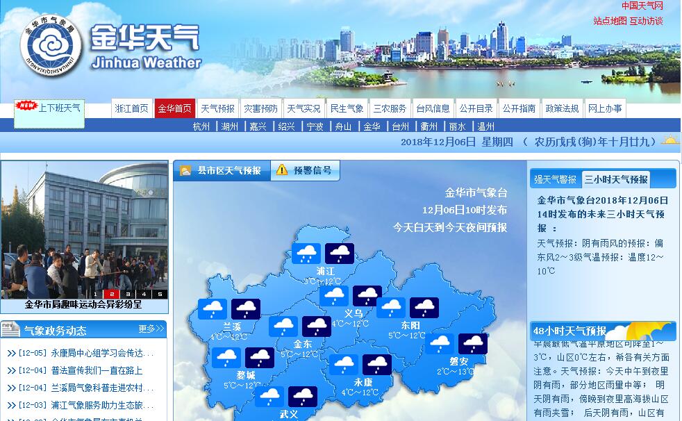 金华市气象系统各级管理机构实行上级气象主管机构与本级人民政府双重领导,以上级气象主管机构领导为主的管理体制,在上级气象主管机构和本级人民政府领导下,根据授权承担本行政区域内气象工作的政府行政管理职能,依法履行气象主管机构的各项职责。金华市气象局的机构规格为正处级,其主要工作职责是:1、负责本行政区域内气象事业发展规划、计划的制定及气象业务建设的组织实施;负责本行政区域内气象设施建设项目的审核;对本行政区域内的气象活动进行指导、监督和行业管理。2、组织管理本行政区域内气象探测资料的汇总、传输;依法保护气象探测环境。3、负责本行政区域内的气象监测、预报管理工作,及时提出气象灾害防御措施,并对重大气象灾害作出评估,为本级人民政府组织防御气象灾害提供决策依据;管理本行政区域内公众气象预报、灾害性天气警报以及农业气象预报、城市环境气象预报、火险气象等级预报等专业气象预报的发布。4、管理本行政区域人工影响天气工作,指导和组织人工影响天气作业;组织管理雷电灾害防御工作,会同有关部门指导对可能遭受袭击的建筑物、构筑物和其它设施安装的雷电灾害防护装置的检测工作;负责本行政区域内的气球施放管理工作。5、负责向本级人民政府和同级有关部门提出利用、保护气候资源和推广应用气候资源区划等成果的建议;组织对气候资源开发利用项目进行气候可行性论证。6、组织开展气象法制宣传教育,负责监督有关气象法规的实施,对违反《中华人民共和国气象法》有关规定的行为依法进行处罚,承担有关行政复议和行政诉讼。7、统一领导和管理本行政区域内气象部门的计划财务、人事劳动、科研和培训以及业务建设等工作;会同县(市)人民政府对县(市)气象机构实施以部门为主的双重管理;协助地方党委和人民政府做好当地气象部门的精神文明建设和思想政治工作。8、承担浙江省气象局和本级人民政府交办的其它事项。