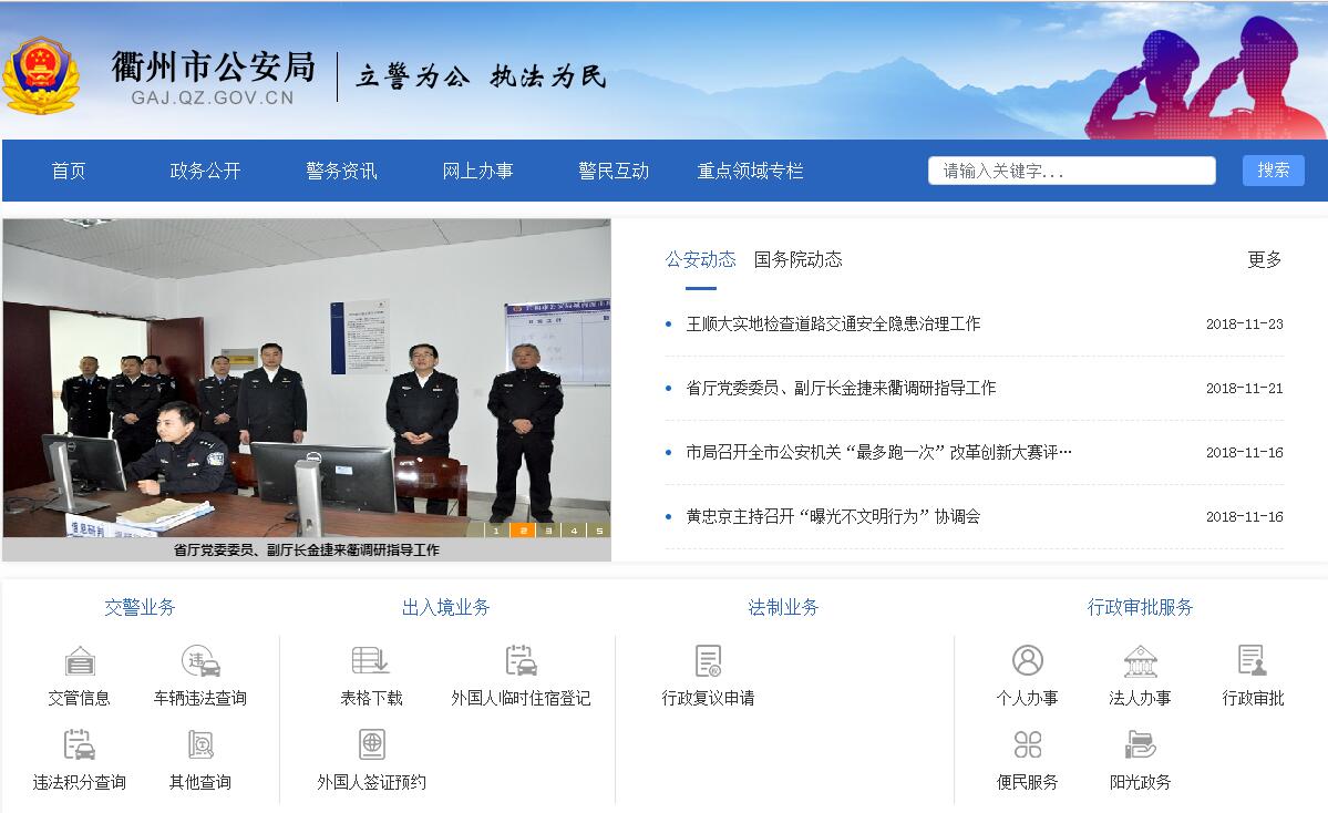 衢州市公安局主要职责:(一)贯彻执行党和国家有关公安工作的方针、政策、法律、法规和市委、市政府、上级公安机关的指示,起草相关政府规范性文件,部署、指导、监督全市公安工作。(二)掌握影响社会稳定、危害国内安全和社会治安的情况,分析形势,研究提出对策措施;组织、指导110接处警和公安情报信息工作。(三)负责组织、指导对危害国内安全案件的侦查,对黑社会组织等的侦控和基础调查工作。(四)主管和指导经济、刑事犯罪等的侦查工作,组织、协调重大案件和跨县(市)重大案件以及上级交办案件的侦查工作。(五)指导、监督全市公安机关依法查处危害社会治安秩序行为,依法管理户籍、流动人口、居民身份证、危险物品、特种行业和内河水域,组织、协调对重特大治安事件和突发性事件的处置工作,管理集会、游行、示威活动;组织、指挥公安特警队的处突防暴和巡逻防控工作。(六)负责中国公民出入境和外国人在中国境内居留、旅行的有关工作。(七)负责全市的消防监督管理工作;领导公安消防队承担重大灾害事故和其他以抢救人员生命为主的应急救援工作。(八)组织、指导、监督全市公安机关维护道路交通安全、交通秩序以及机动车辆、驾驶员管理工作;指导、监督全市辖区内的高速公路交通安全管理工作。(九)指导全市公安机关对国家机关、社会团体、企事业单位和重点工程的治安保卫工作以及群众性治安保卫组织的治安防范工作;负责全市保安服务活动的监督管理工作。(十)按照规定权限,组织、指导计算机信息系统及互联网安全保护管理工作,组织、指导网络监控、网络技术侦察和网络犯罪侦查。(十一)指导、监督全市看守所、治安拘留所等羁押场所的管理工作;管理市看守所、治安拘留所。(十二)规划、指导全市公安法制工作,指导、监督全市公安机关执法活动;负责指导、监督收容教养审批工作;承担行政复议、应诉、国家赔偿等案件的办理工作。(十三)组织实施对来衢的党和国家领导人、重要外宾以及重大活动、重要会议的安全警卫工作。(十四)组织、协调、指导全市禁毒、缉毒工作。(十五)组织、指导全市公安科学技术和信息化工作;负责全市公安机关信息通信勤务保障工作的规划协调和组织指导;负责全市社会公共安全技术防范的行业管理。(十六)指导、管理全市公安机关装备、被装、经费和基本建设等警务保障工作。(十七)指导全市公安消防部队建设;按规定权限,对武警部队执行公安任务实施领导和指导;指导森林等公安机构的业务工作。(十八)指导全市公安队伍建设;主管公安分局的领导干部;协管县(市)公安机关领导干部,指导县(市)公安机关的领导班子建设;负责全市公安机关及其人民警察的表彰奖励、评优创模和人民警察内务条令的贯彻实施工作;制定全市公安教育训练发展规划,组织指导公安民警学历教育、在职训练、警察体育工作;组织、协调、指导全市公安机关对外宣传工作。(十九)按规定权限实施对公安机关及人民警察的监督;组织、指导全市公安机关督察工作,组织、指导维护民警执法权益工作;查处和督办公安队伍违纪案件;组织、指导全市公安内部审计工作。(二十)严格执行党风廉政建设责任制,全面贯彻落实上级党委、政府及纪检监察组织对反腐倡廉建设工作的决策和部署,负责本单位职责范围内的党风廉政建设工作及惩治和预防腐败体系建设工作。(二十一)承办市政府交办的其他事项。