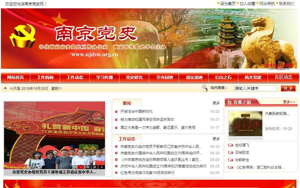| 网站简介: 中共南京市委党史工作办公室为市委直属正局级事业单位,是中国共产党南京史的研究部门,也是市委主管全市党史征研、宣教的工作部门。 |