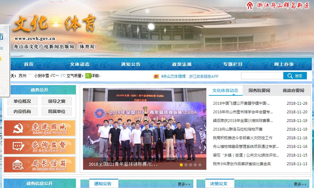 舟山市文化广电新闻出版局(体育局)是主管新区(市)文化、文物、广电、新闻出版和体育工作的市政府工作部门。其主要职责:(一)贯彻执行党和国家有关文化、文物、广电、新闻出版和体育工作的方针、政策和法律、法规;拟订新区(全市)文化、文物、广电、新闻出版和体育事业的发展规划和政策,并组织实施。(二)拟订新区(全市)文化体育产业发展规划和政策,并组织实施;负责新区(全市)文化体育产业工作宏观管理,指导、推进文化体育产业发展。(三)指导、管理新区(全市)戏剧、音乐、舞蹈、曲艺、美术、书法、摄影等文学艺术事业,指导艺术创作与生产,推动各门类艺术的发展。(四)指导、管理新区(全市)社会文化事业,推进公共文化服务建设;指导图书馆、文化馆、综合文化站和基层文化建设;指导开展各类群众性文化活动;组织、指导具有示范性的重大文化艺术活动。(五)综合管理新区(全市)文物、博物馆事业;加强博物馆建设;负责组织申报市级以上文物保护单位;承担历史文化名城、历史文化保护区的相关审核、申报和管理工作;实施文物保护与抢救工作。(六)拟订新区(全市)非物质文化遗产保护工作的规划和政策规定;组织实施非物质文化遗产保护和优秀民族文化的保护、传承、普及工作。(七)负责新区(全市)广播电影电视行政(行业)管理;负责广播电影电视的日常宣传监管工作。(八)负责新区(全市)书、报、刊、电子出版物及音像制品和内部资料的行业管理工作;承担著作权行政管理工作。(九)研究新区(全市)体育竞赛、竞技体育项目设置与重点布局;负责新区(全市)运动队和少体校建设,选拔培养高水平的竞技体育后备人才。(十)指导、管理新区(全市)体育事业,组织实施《全民健身计划纲要》,指导开展群众性体育活动,推行国家体育锻炼标准,开展国民体质监测。(十一)拟订新区(全市)文化体育事业基本建设规划,指导重点文化体育设施建设和基层文化体育设施建设。(十二)指导监督新区(全市)文化、文物、广电、新闻出版和体育行政执法工作;负责局系统安全生产日常监督管理工作,承担文化、体育市场的安全监督管理工作;负责承办文化、文物、广电、新闻出版和体育方面的行政诉讼、行政复议等工作。(十三)按规定权限申报和实施新区(全市)对外文化、广电、新闻出版和体育交流计划和项目,推进对外文化体育交流与合作。(十四)指导新区(全市)文化、文物、广电、新闻出版、体育行业协会、学会等社团组织的活动。(十五)承办新区党工委、管委会和市委、市政府交办的其他事项。