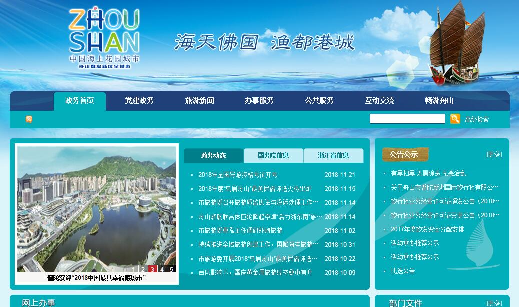 舟山市旅游委员会主要职责:(一)贯彻执行国家和省、市关于旅游业发展的法律、法规和方针、政策;研究起草新区(全市)旅游业发展、行政(行业)管理以及风景名胜区管理等方面的规范性文件,经审议通过后组织实施。(二)统筹推进海洋旅游综合改革工作,协调解决海洋旅游综合改革和发展的重大问题,协调旅游开放政策的争取工作,协调推进旅游业相关产业融合发展,指导旅游投融资机制创新。(三)统筹协调新区(全市)旅游产业的发展,组织编制新区(全市)旅游产业发展战略、中长期发展规划及政策措施并组织实施;组织编制风景名胜区和重点旅游发展区、旅游度假区等旅游发展建设(开发)规划,按程序报批和审查;指导新区(全市)旅游项目的规划、开发和建设,并对旅游项目在立项前组织开展会审;开展旅游产业招商引资和旅游项目的协调、服务工作。(四)协调风景名胜区设立、规划、建设、保护和管理工作中的重大问题;指导和监督风景名胜区管理机构依法履行风景名胜区建设、保护和管理职责;负责新区(全市)风景名胜和旅游资源的调查,对旅游资源保护和利用情况进行监督检查和评估。(五)负责新区(全市)旅游市场开发工作,组织实施新区(全市)旅游整体形象的宣传推广;负责旅游对外交流与合作,推动旅游区域合作;监测新区(全市)旅游产业经济运行,负责旅游统计、分析和信息发布;负责推进旅游公共服务体系建设,强化旅游综合服务功能。(六)负责新区(全市)旅游行业管理和旅游行业标准化体系建设;指导新区(全市)旅游行业的精神文明和诚信体系建设;监督管理旅游市场秩序和服务质量,维护旅游消费者和经营者合法权益。(七)负责新区(全市)旅游安全的综合协调和监督管理;编制旅游行业突发公共事件应急预案,指导协调旅游应急救援工作。(八)负责新区(全市)旅游人才规划编制并组织实施;负责新区(全市)旅游行业岗位资格考试工作;会同有关部门实施旅游从业人员的职业资格标准和等级标准;协调在舟旅游院校的旅游专业设置和旅游人才培养工作;指导新区(全市)旅游培训工作。(九)承办新区党工委、管委会和市委、市政府交办的其他事项。