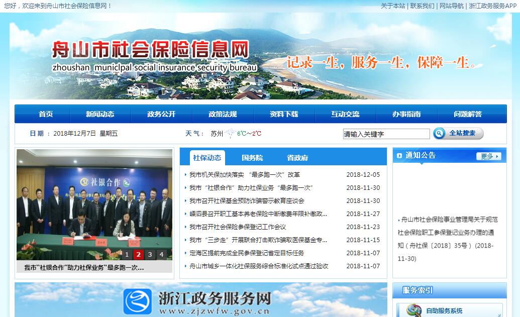 舟山市社会保险事业管理局成立于1989年,系副县(处)级参照公务员管理单位。其主要职责:(一)受市人力资源和社会保障局委托,负责拟订新区(全市)城乡社会保险及其补充政策和标准,逐步提高基金统筹层次;拟订新区(全市)内社会保险关系转移政策;会同有关部门负责拟订社会保险基金、社会保险市级调剂金及补充社会保险基金管理制度,并组织实施社会保险基金的预测预警分析,制定应对措施;负责审核批准定点医疗机构和定点药店资格;负责各类补充保险相关内容的审核和备案。(二)负责经办市本级职工基本养老(含定海)、医疗、工伤、生育保险和被征地农民养老保障工作;指导各县(区)的社会保险经办工作。(三)组织实施对县级社保经办机构进行业务目标任务考核;做好新区(全市)社保信息系统的建设、运行、维护和安全管理工作。(四)会同市财政、地税部门做好社会保险基金的收支和管理工作;负责编制新区(全市)社会保险基金的预算和决算,做好新区(全市)社会保险会计、统计和信息以及基金的运行和分析等工作。(五)制定市本级社会保险各项业务经办标准和规范化流程;负责市本级社会保险稽核工作,查处违法违规行为。(六)负责对定点医疗机构和定点药店协议管理,并按协议对两定机构进行审核监督,做好医疗费用的结算工作。(七)负责离退休人员基本养老金的核定和社会化发放工作;负责市本级企业退休人员的社会化管理服务工作。(八)开展与基本养老、医疗、工伤、生育保险相关的调查、统计、宣传、咨询服务、社保档案管理、信访和其他日常服务工作。(九)承办新区党工委、管委会和市委、市政府及市人力资源和社会保障局交办的其他事项。