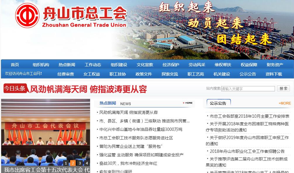 舟山市总工会成立于1987年3月,现设主席1人,副主席3人,下设办公室、基层工作部、经济保护部、权益保障部、财务部(资产监管部)、市直属工会工作部5部1室及市女职工委员会。下属六个事业单位:市财贸工会、市海员产业工会委员会、市工会职工技协办公室 、市工人文化宫(市职工业余学校)、市总工会职工维权帮扶中心、市总工会普陀山工人休养院。市总工会是本市各县(区)工会,功能区工会工委,市产业工会,市属系统工会工委的领导机关,市总工会由市委、省总工会领导,其主要职责是:一、根据党的路线、方针、政策和中心任务及市委和上级总工会的工作部署,开展工运理论研究, 拟定舟山工运发展规划,确定新区(全市)工会工作的基本思路和工作目标任务,指导新区(全市)工会工作。二、贯彻执行上级总工会和市工会代表大会的决议,依照法律和《中国工会章程》,组织和指导新区(全市)各级工会认真履行维护、建设、参与、教育的社会职能。三、发挥党和政府联系职工群众桥梁和纽带作用,及时向新区党工委、管委会和市委、市政府以及上级总工会反映职工群众的意愿和要求,提出意见和建议;参与涉及职工切身利益的政策、制度的制定;参与涉及职工合法利益的重大问题调查处理;参与困难职工帮扶救助,提供服务平台。四、依照《工会法》和《中国工会章程》,负责指导基层工会自身改革和建设;协同县(区)委、功能区和市有关产业系统、直属单位党委(党组)做好工会领导干部管理工作,负责工会干部的管理和培训。五、受市委、市政府委托,负责组织实施市劳模、市“五一”劳动奖章(状)获得者的评选、表彰以及管理服务工作;负责全国、省劳模和模范集体以及全国、省“五一”劳动奖章(状)获得者的推荐、管理服务工作。六、组织和代表职工参与国家、社会事务管理,指导检查督促企事业单位实行厂务公开民主管理;参与协调劳动关系,为职工提供法律援助;参与对企业安全生产保护进行检查督促;参与职工伤亡事故的调查处理。七、参与对职工队伍思想政治教育,组织指导基层工会文化体育阵地建设,指导基层工会开展职工文化体育活动;负责工会新闻舆论媒体宣传。八、依照《工会法》和《工会女职工委员会工作条例》,负责基层工会女职工组织建设,依法维护女职工的合法权益和特殊利益;组织开展符合女职工特点的活动。九、负责工会经费的收缴、使用、管理以及审查、审计监督工作;负责工会资产管理、增值保值。十、开展与境外城市工会的交流合作,发展同港澳台工会组织的友好关系。十一、承办新区党工委、管委会和市委、市政府以及 上级总工会交办的其他事项。