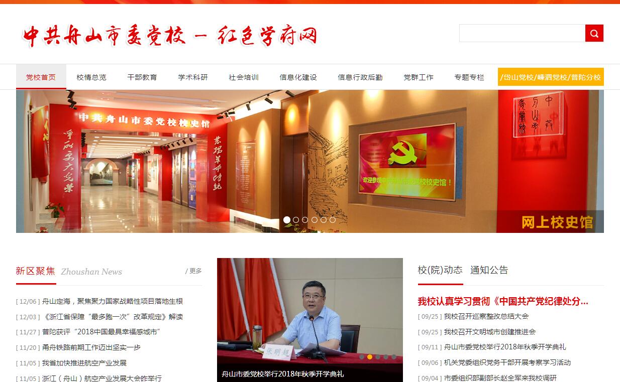 中共舟山市委党校是在舟山市委直接领导下培养党员领导干部和理论干部的学校,是党委的重要部门,是培训轮训党员领导干部的主渠道,是党的哲学社会科学研究机构。中共舟山市委党校与舟山行政学院、舟山市社会主义学院实行“一套班子、三块牌子”的办学体制(简称“一校两院”)。舟山市委党校位于定海区昌洲大道2000号。校园占地面积96.4亩,建筑总面积13900平方米,主要有行政办公楼、教学楼、图书楼、餐厅、学员宿舍和报告厅、网、篮球场等。同时可容纳400人办学、200人住宿、300人用餐的教育设施、设备。校图书馆藏书8万余册,有互联网、校园网和中央党校远程教学网及各种多媒体教学设备等。学术性刊物有《中共舟山市委党校学报》。学校现有教职工120人,其中离退休人员48人,在职人员72人。在职人员中有专职教师15人,校内兼职教师25人,教研人员中有副高职称7人,中级职称12人。舟山市委党校主要职责:学习、研究、宣传马列主义、毛泽东思想和邓小平理论。轮训培训全市副县(处)级领导干部、乡(镇)科级正职党员干部、科级中青年后备干部和理论干部。主体班次有:进修班、培训班、专题研讨班,市属部门举办的领导干部培训班。同时还承担着定海区党政干部的教育培训任务。进修班主要轮训市管的县处级干部,学制2个月;培训班主要培训全市优秀中青年干部,学制3个月;专题研讨主要是班围绕市委、市政府中心工作设立专题,学制为3—7天。舟山行政学院是市政府领导下培训国家公务员的专门院校,主要职责:对市县两级公务员进行任职前的资格培训、岗位职务培训和专门业务培训;对初级公务员进行资格培训;开展对政府行政管理的科学研究。舟山市社会主义学院是中共舟山市委领导的具有统一战线性质的政治学院,主要职责:组织本市民主党派各级领导骨干和无党派人士,学习研究马克思主义基本理论和党的路线、方针、政策;负责本市统一战线系统干部的岗位培训;进行统一战线理论研究。"一校两院"还适应社会需要,本着“开放合作”的理念,开展形式多样的学历教育和社会培训工作。不仅与中央党校、浙江省委党校、华东交通大学、杭州电子科技大学、浙江经济管理职工大学等高校联合开设大专、本科、研究生三个层次的学历教育,同时举办企业培训、职业资格证书考前辅导等非学历培训。同时立足舟山实际,不断整合资源、打造特色、开发项目、培育品牌,加深与全国各地在干部教育培训领域的交流与合作,承接来自各地各类培训、会议、考察活动。21世纪,“一校两院”将以科学发展观理论和党的十八大精神为指导,围绕新区建设的主题,大干实干苦干巧干,进一步深化以教学为中心的各项改革,推动队伍建设、学科建设、制度建设、校园建设和信息化建设,建立符合时代要求,具有海岛特点,体现“一校两院”特色,充满生机活力的办学机制,真抓实干,创新创业,为推进舟山干部队伍建设,推进舟山经济发展和社会进步,作出积极的贡献!